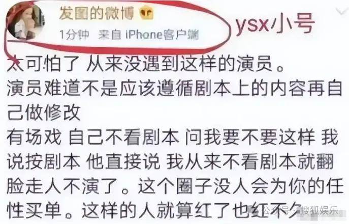 女方在小号直指他不守规矩不看剧本,自我又任性↓
