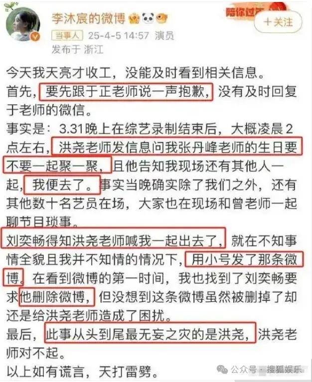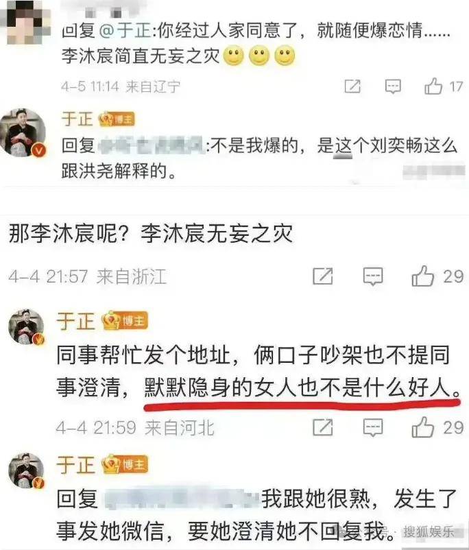 吓得洪尧的老板于正急忙出来辟谣澄清,称是误会一场,顺便曝光了李沐宸跟刘奕畅的恋情