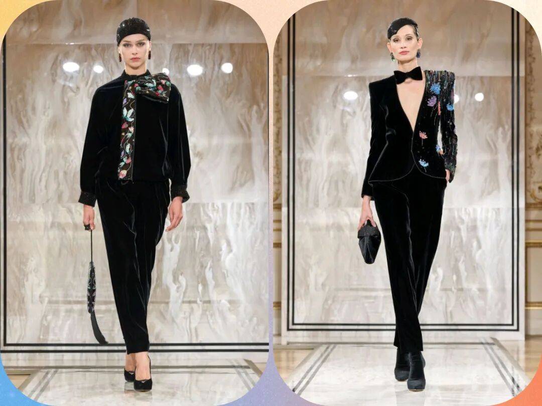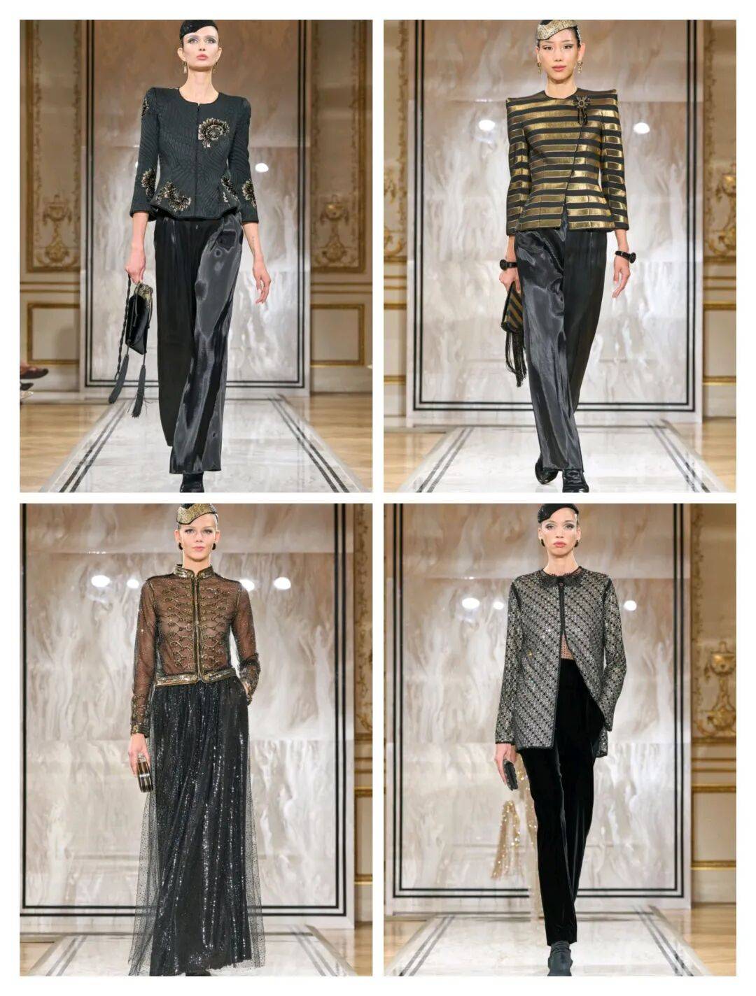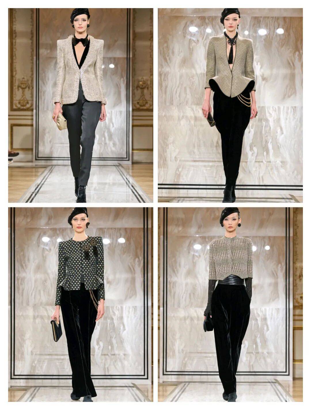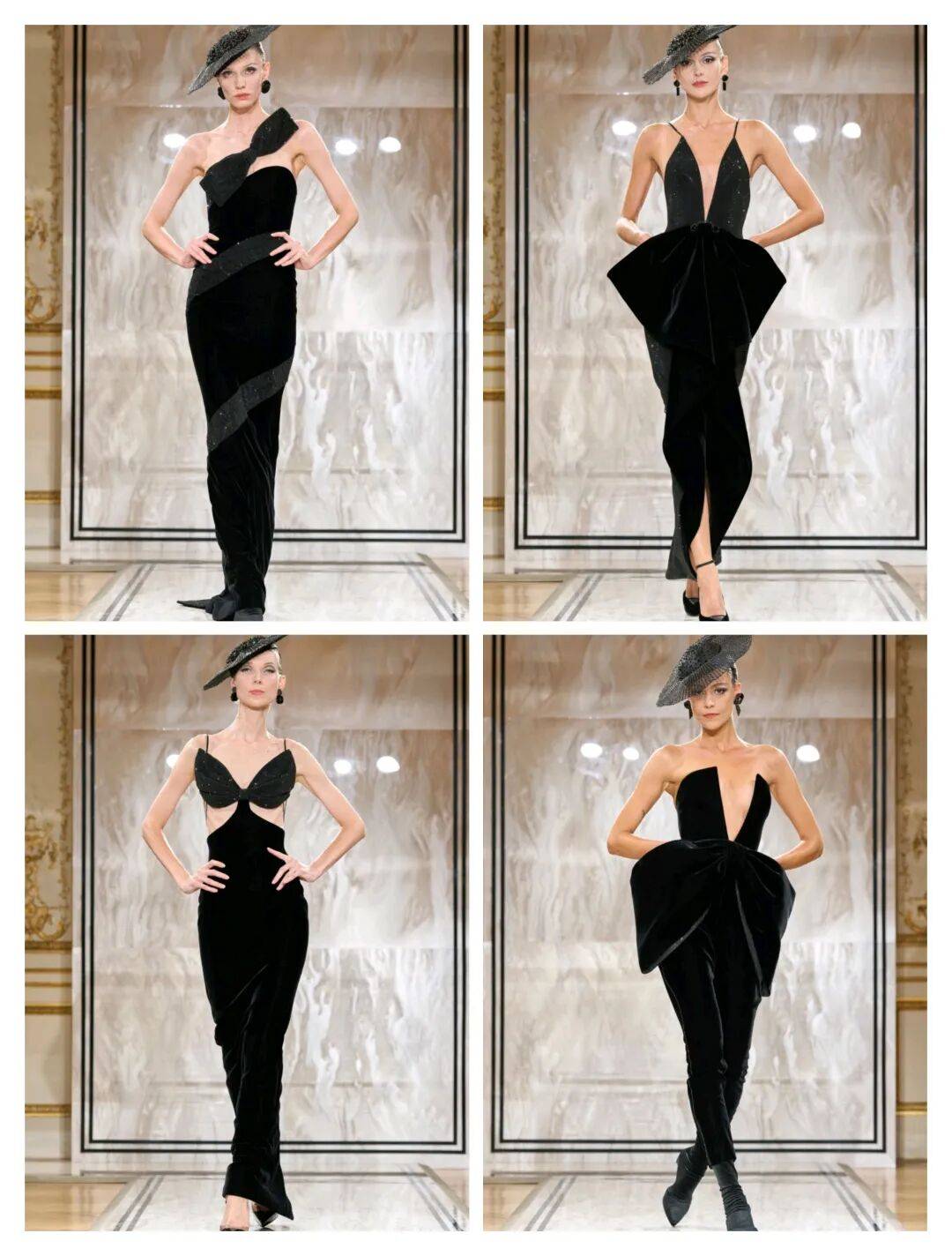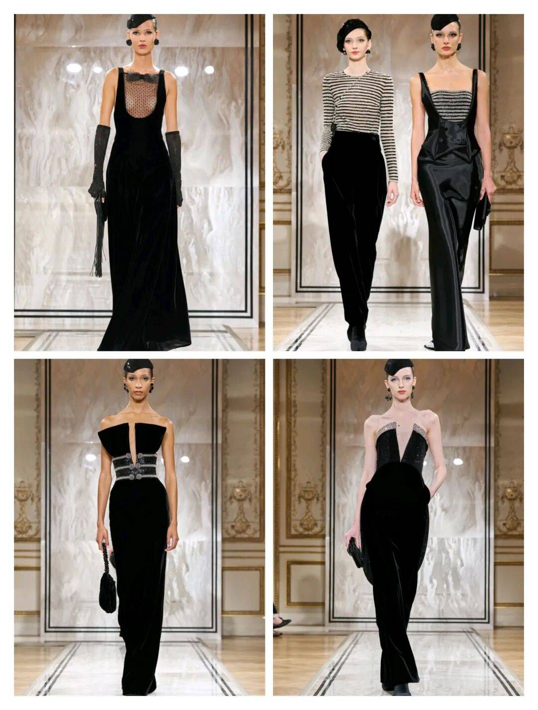 Armani Prive 2025秋冬高定,这些服装在黑色系为主中打造暗黑色系的神秘感,结合天鹅绒、光泽面料等材质也多了奢华华丽的时尚质感。