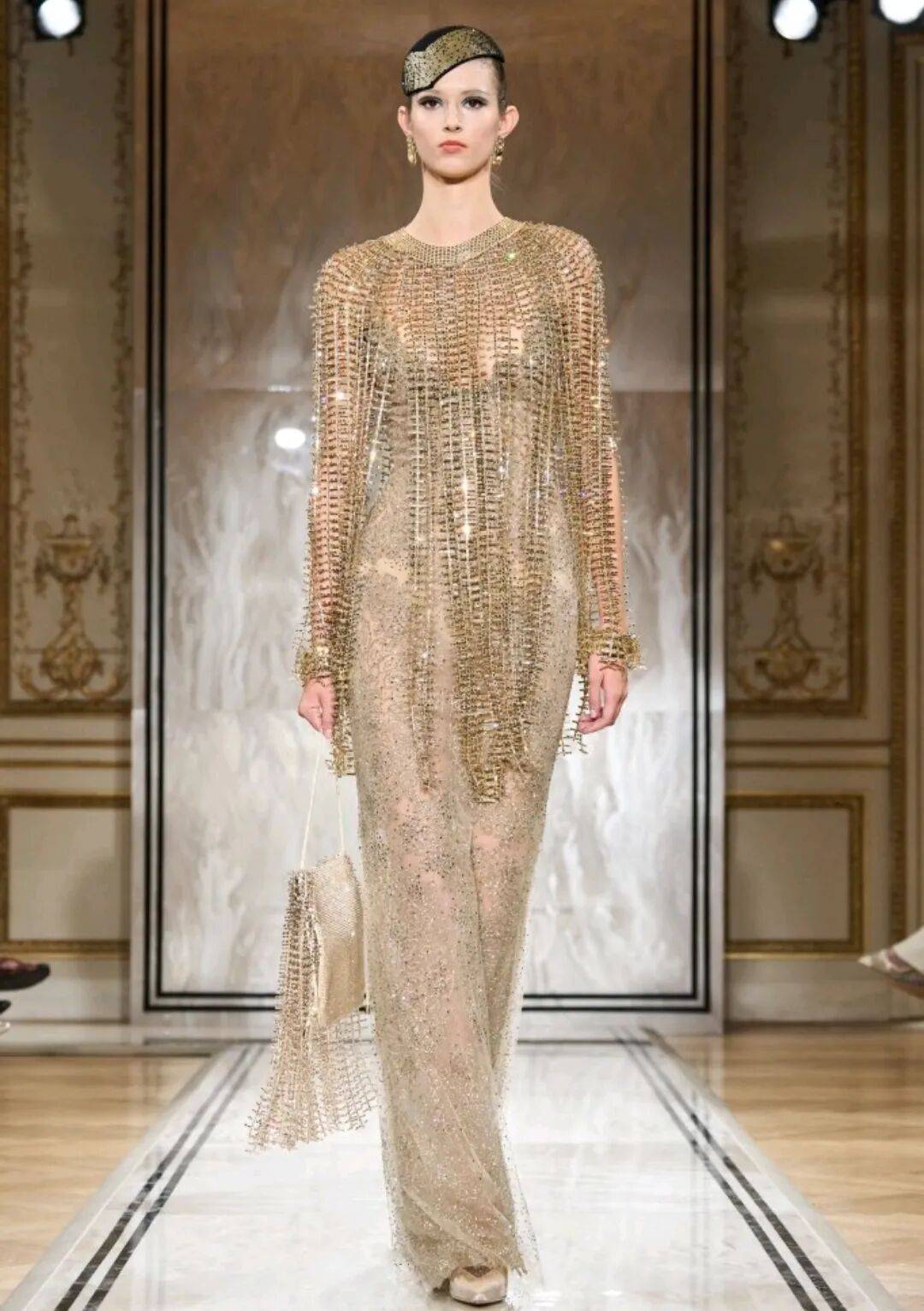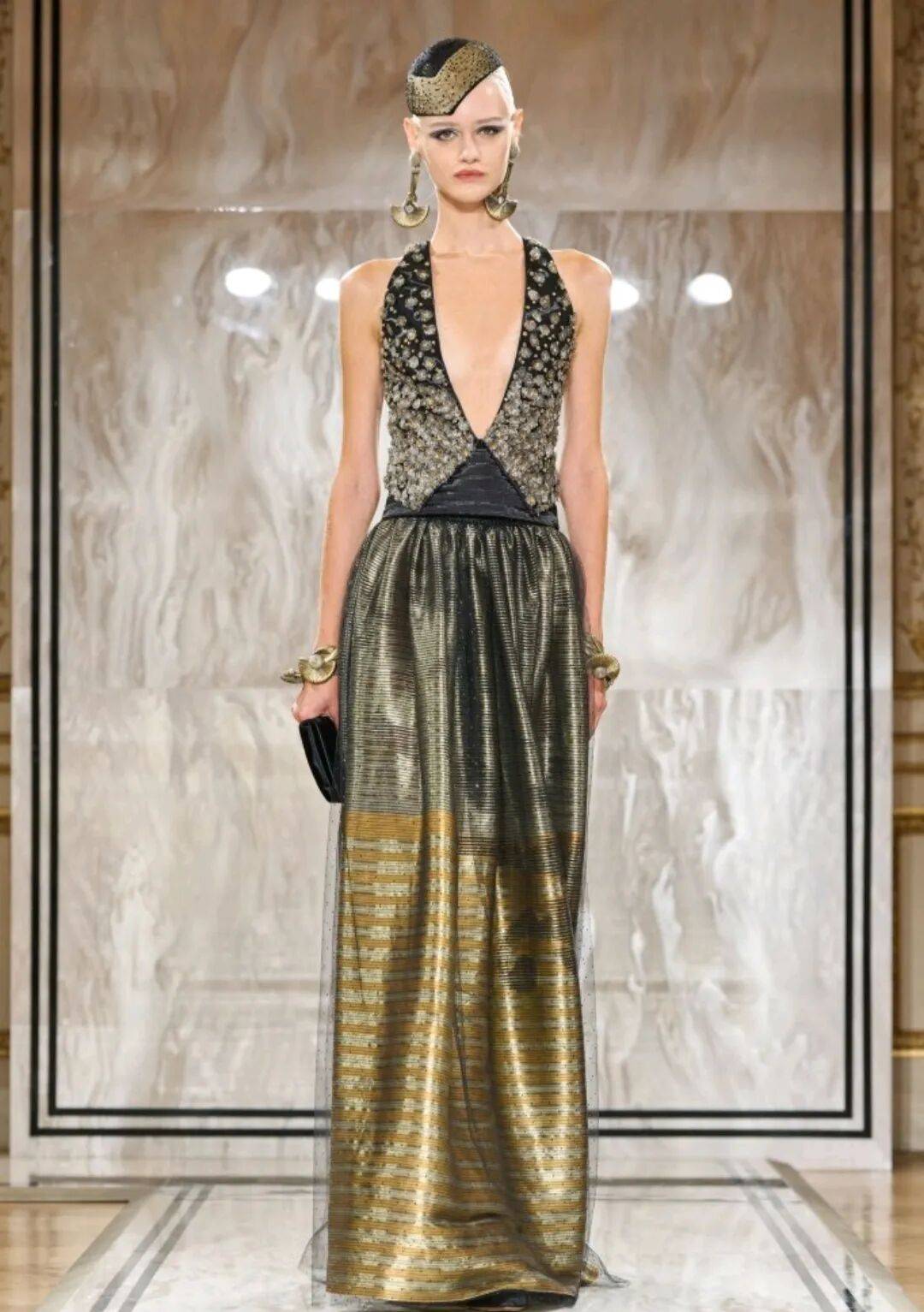 Armani Prive 2025秋冬高定,这些服装在黑色、棕色系等颜色之中,这些色彩增加了一些低调的气质,还有一些轻薄薄纱等材质面料增加更多的纹理质感,在抹胸、背心等元素的设计中,增加不少细节的时尚感,让裙装高级优雅也多了一些奢华高级的时尚。