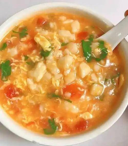 6、加入适量盐、鸡精、胡椒粉调味,最后淋几滴香油提香,搅匀即可盛出,一碗酸香鲜美、软滑顺口的西红柿疙瘩汤就做好了。