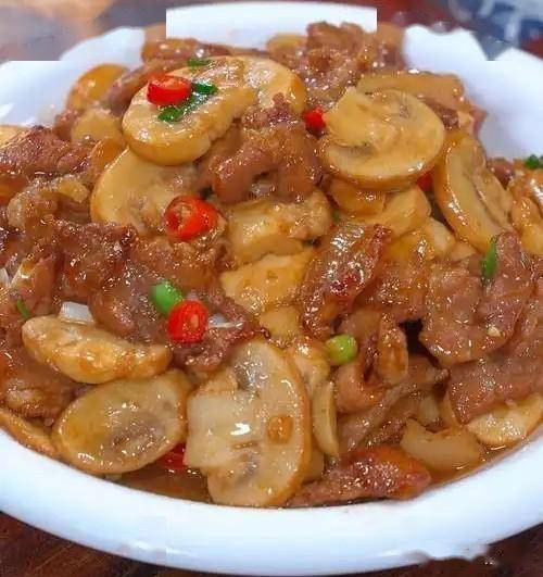 7.淋入适量的水淀粉勾芡,大火翻炒几下,使芡汁包裹在食材上,关火,盛出装盘即可,一道色香味俱全的赤松茸家常小炒就做好了。