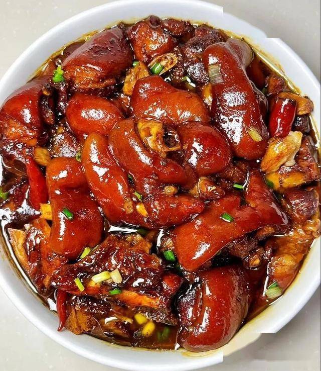 4. 加入生抽、老抽翻炒片刻,倒入适量清水,大火烧开后转小火焖煮约1.5 - 2小时,至猪蹄软烂入味,大火收汁即可。