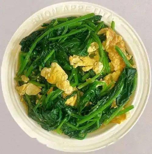 4. 锅中再放少许油,放入蒜末爆香,加入菠菜翻炒几下,倒入鸡蛋,加盐调味,翻炒均匀即可。