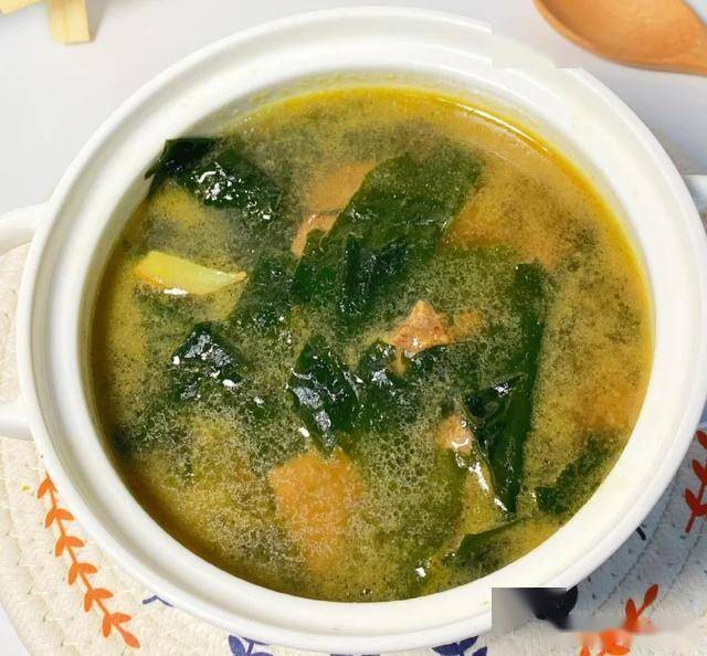 2. 煮制汤底:清水煮开,下海带芽煮5分钟。