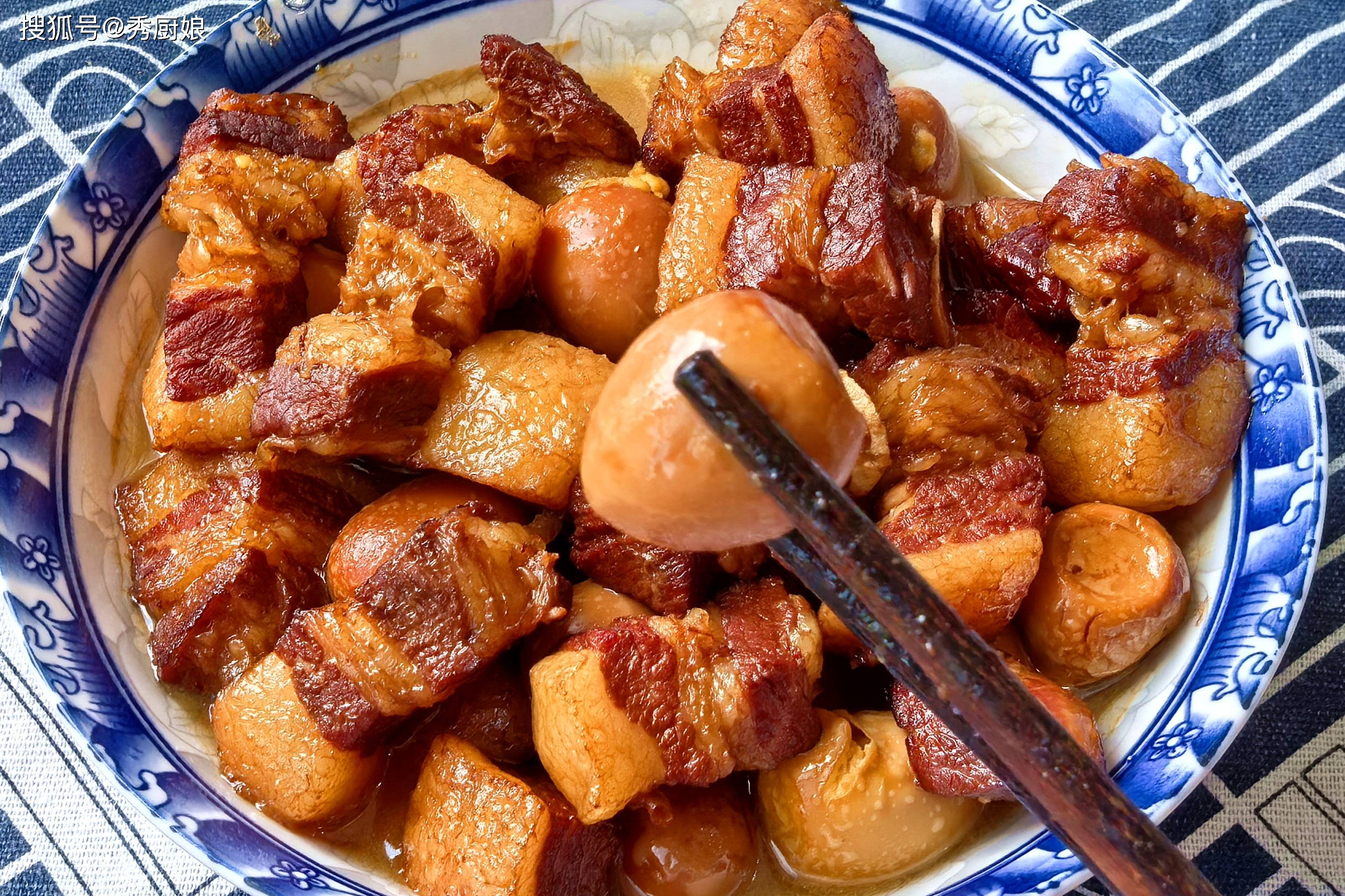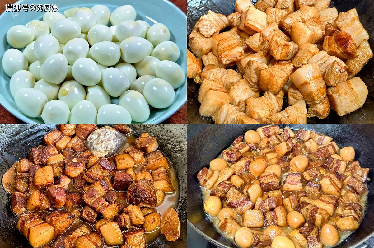 5. 将虎皮鹌鹑蛋放入锅中,和红烧肉一起再炖20分钟,最后大火收汁,鹌鹑蛋比肉还香!