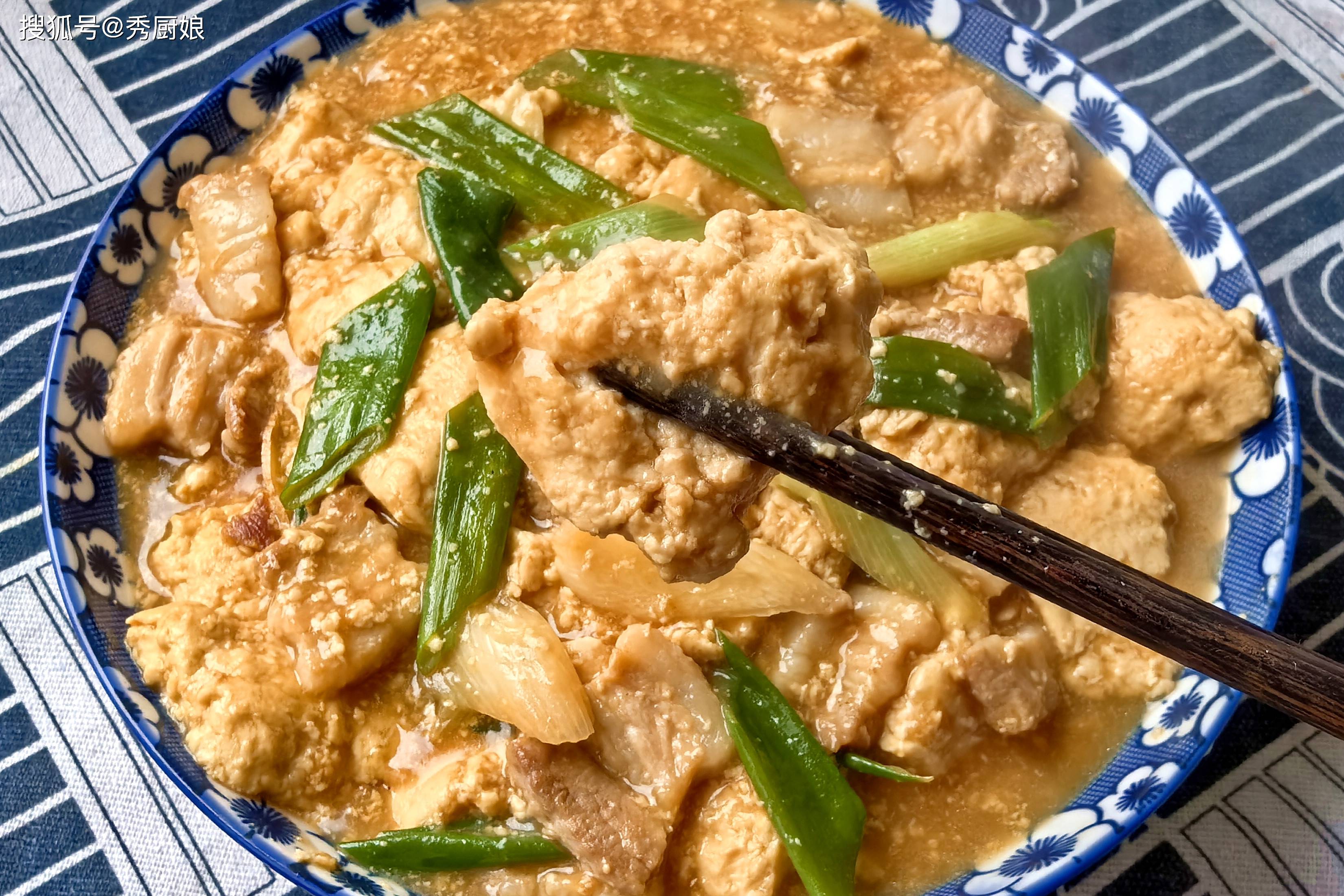 4. 出锅前淋上一点香油,豆腐吸饱了肉汁和大葱的香气,简单又下饭!
