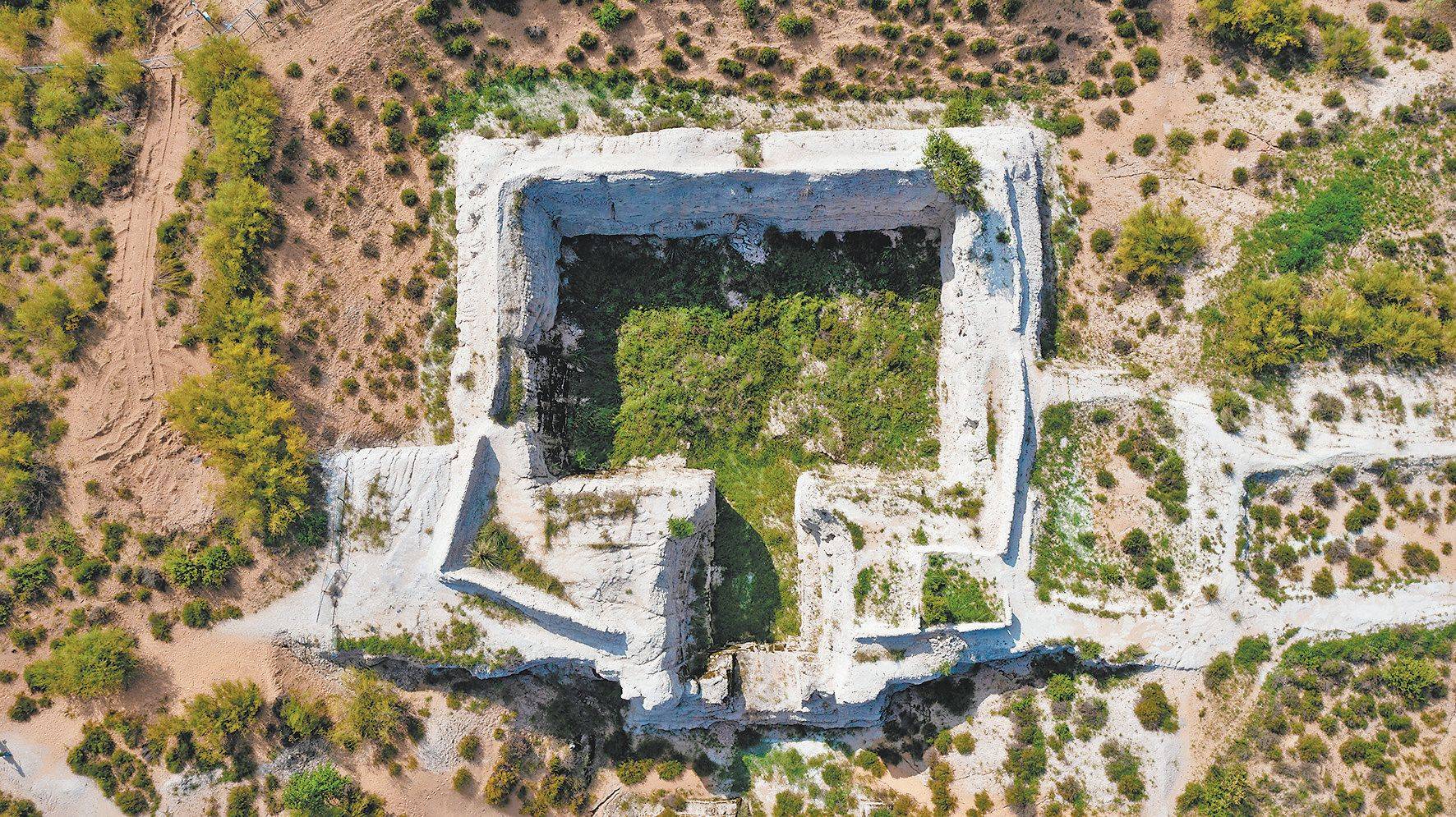 现存统万城遗址遗存分布范围约9.55平方公里,整体布局严谨,防御体系完善: