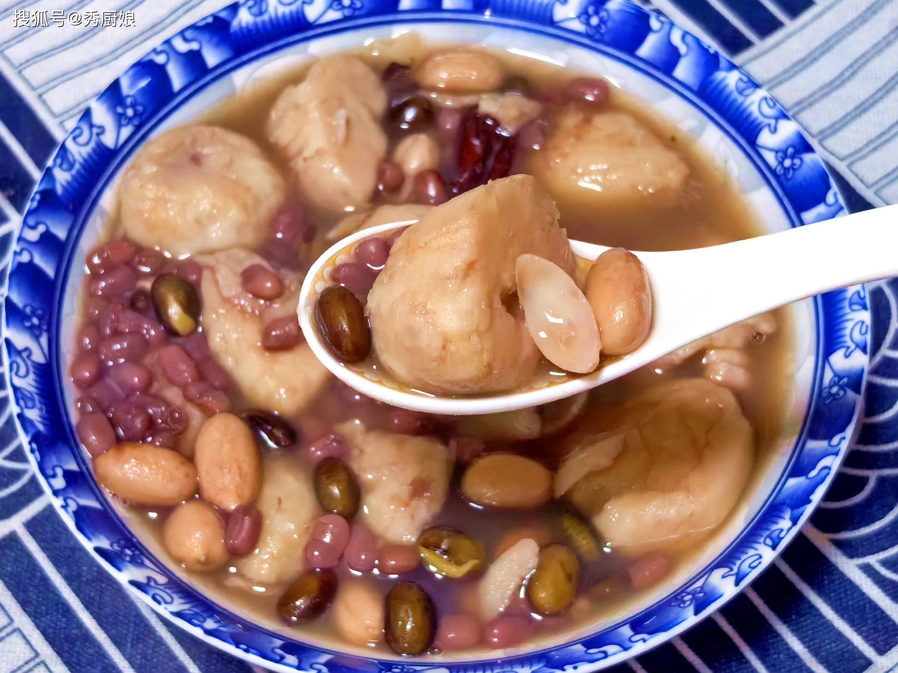 黑豆与紫米搭配,双重补益。紫米富含花青素和膳食纤维,薏米祛湿健脾,芡实固肾益精。这碗粥不仅养心,更能健脾补肾,适合长期食用。