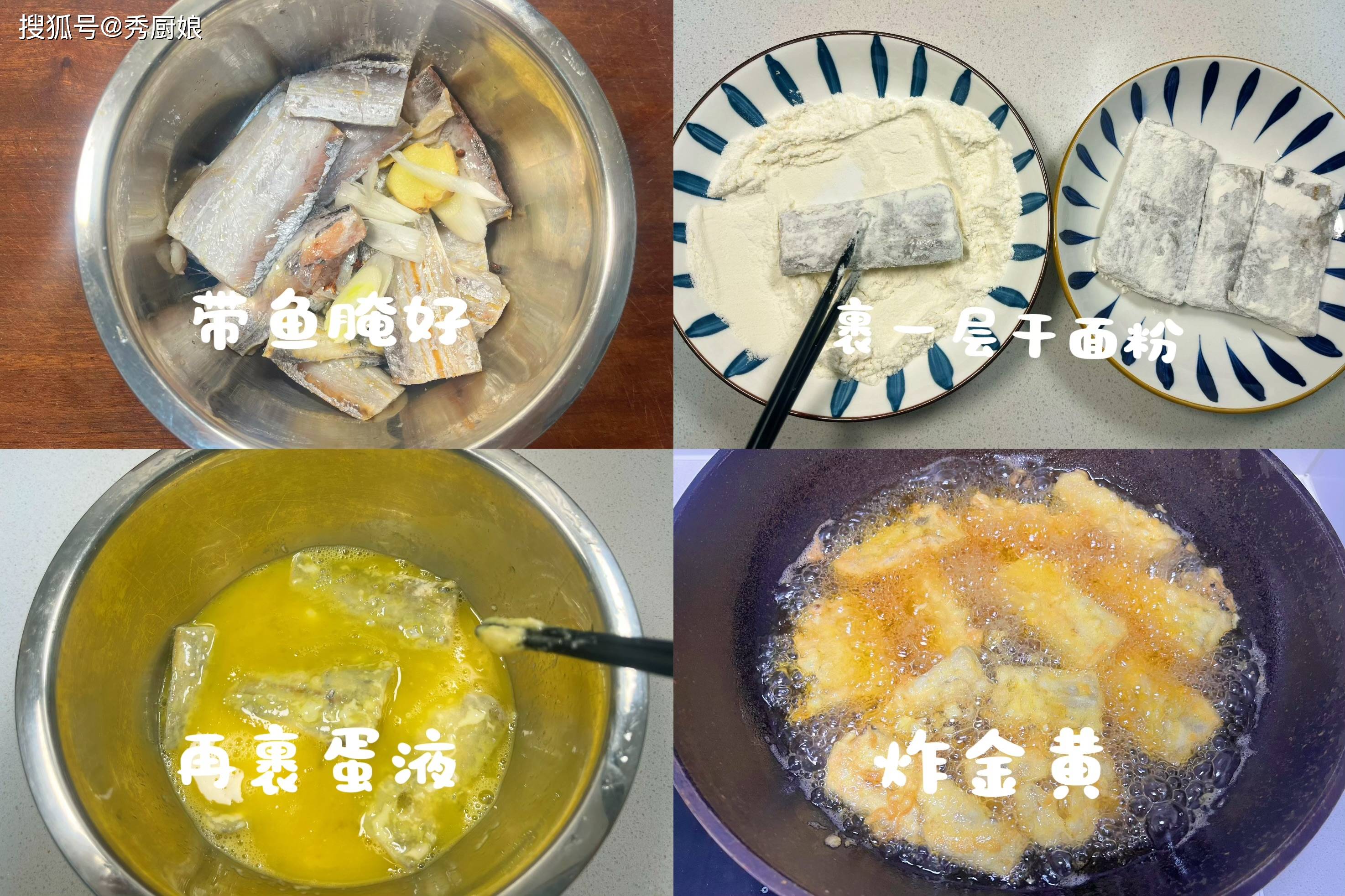 1. 带鱼洗净切段,用厨房纸吸干水分