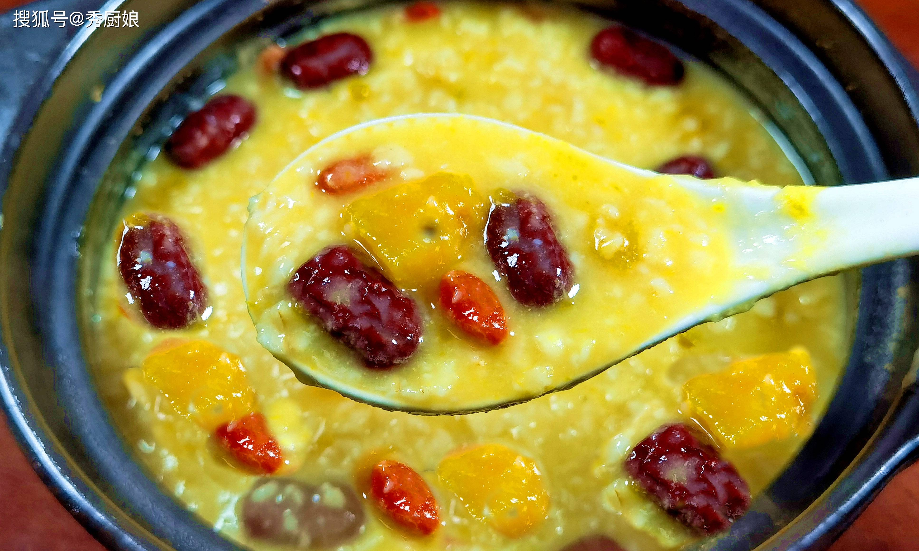 小贴士:这道粥暖胃又润肠,燕麦和南瓜的搭配,营养互补,膳食纤维丰富,特别适合早上喝一碗,全身都暖和。红枣自带甘甜,不用放糖也好喝!