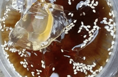 名字“逆袭”:被取名为**“Raindrop Cake”**(直译“雨滴蛋糕”),听起来浪漫又高端,完全没有国内“冰粉”的“接地气”;