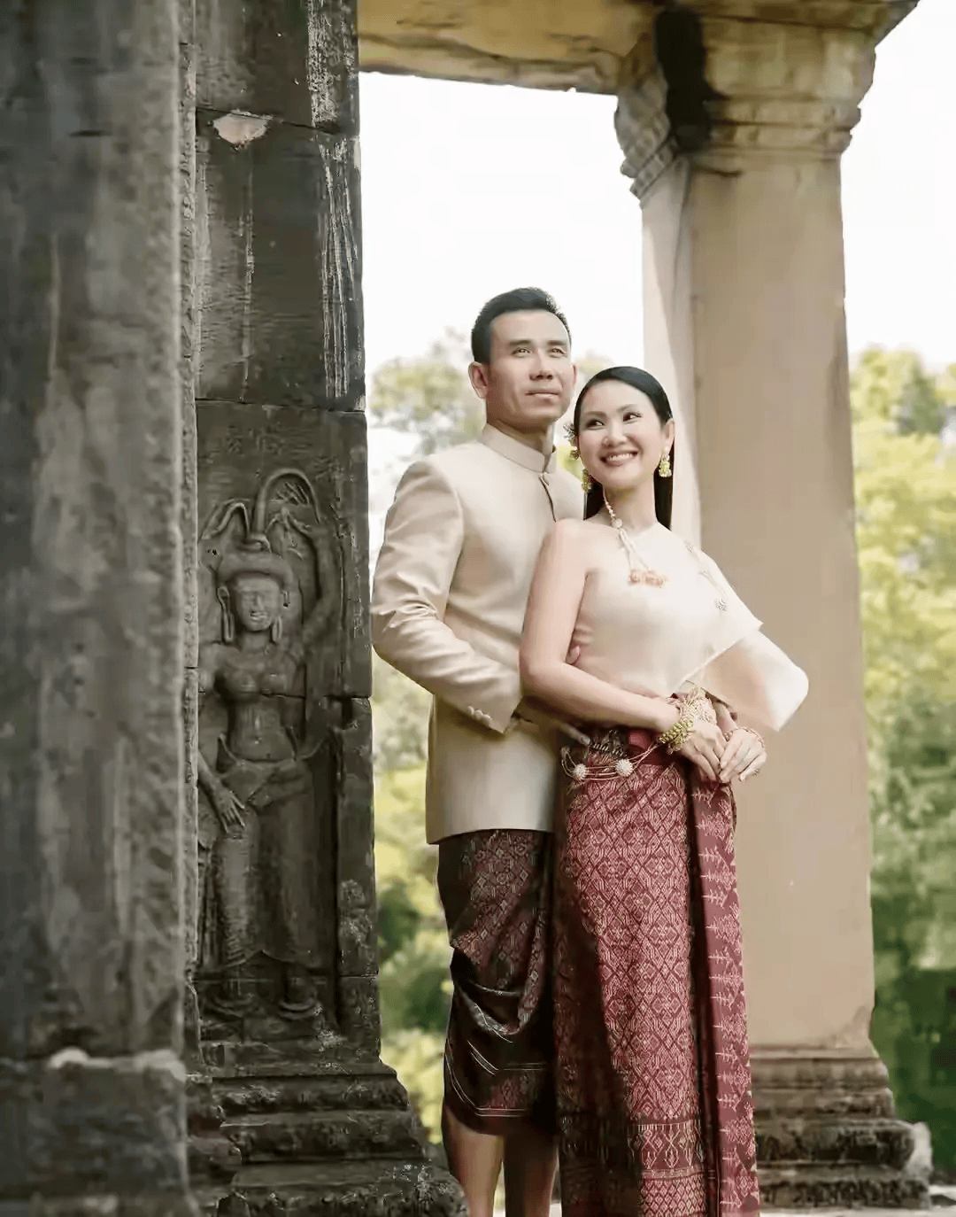 这种 “兼容并蓄” 的特质,让高棉服饰既能扎根传统,又能跟上时代,任彩琳的穿搭正是这种特质的鲜活体现。