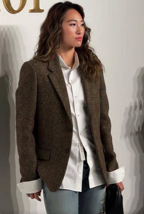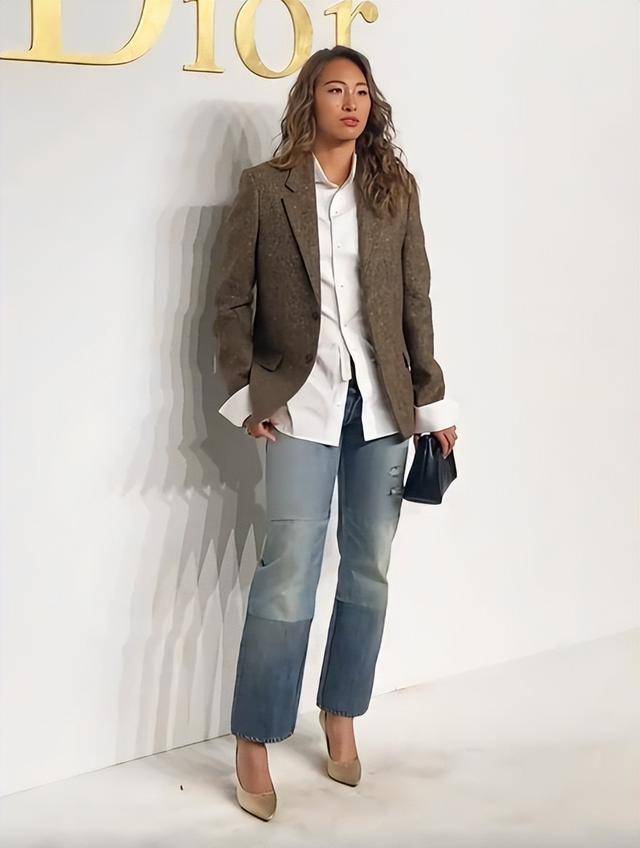 在众多明星翻车的背景下,网球冠军郑钦文的亮相堪称“降维打击”。作为迪奥全球品牌大使,她身着迪奥男装系列棕色短款西装搭配牛仔裤,内搭简单衬衣,小麦色皮肤在灯光下透着健康光泽。1米82的高挑身材加上单手插兜的随性动作,帅度爆表。