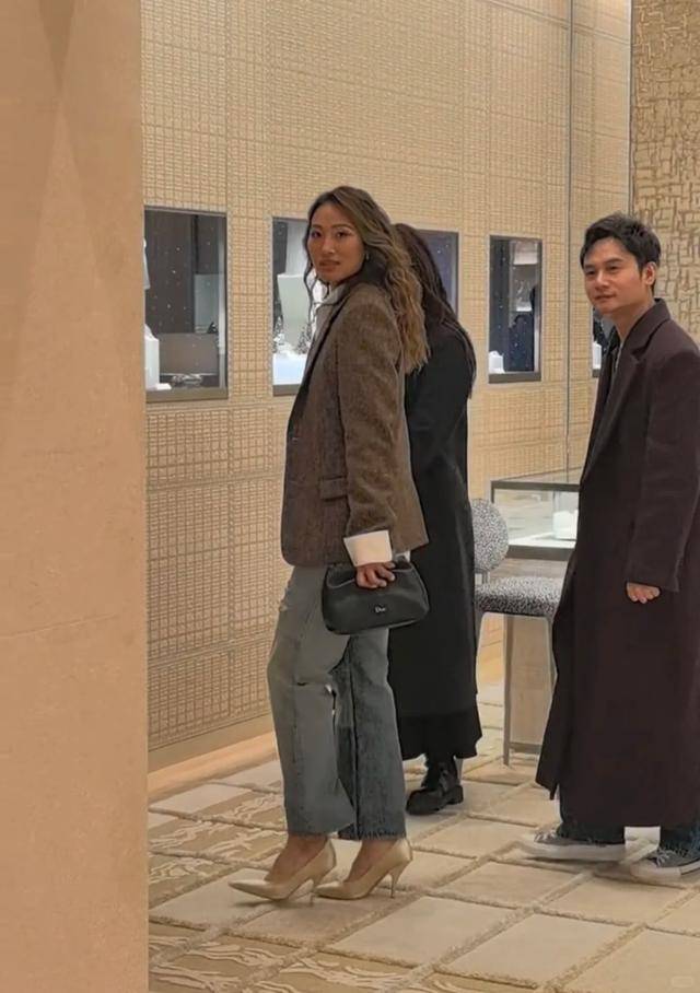 这位刚拿完美网亚军的23岁姑娘,穿迪奥男装系列棕色短款西装搭配牛仔裤,单手插兜站在柜台前。