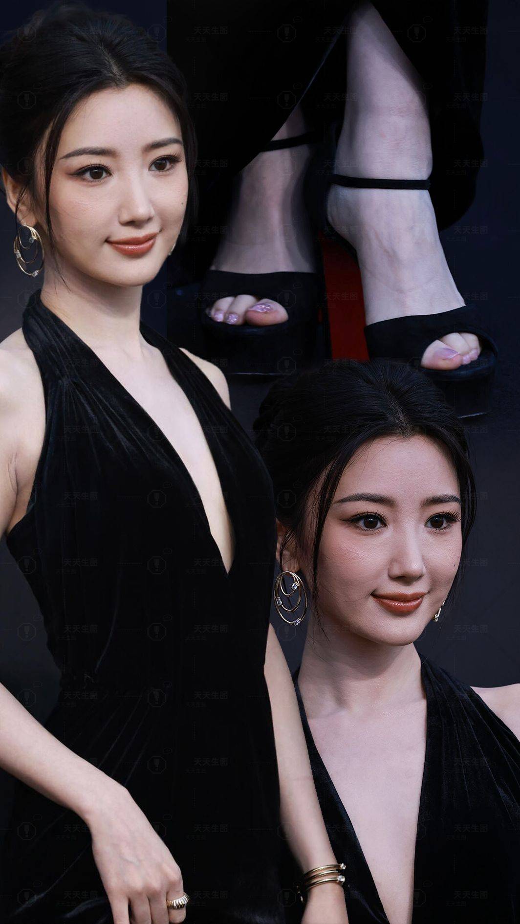毛晓彤绝美 黑色深V礼服长裙穿搭 极好看!美到犯规!