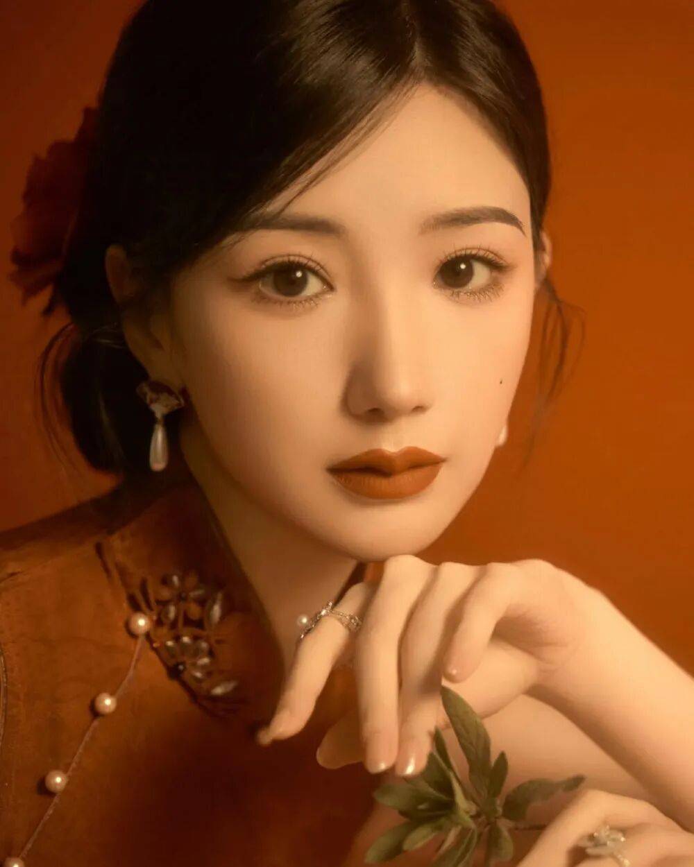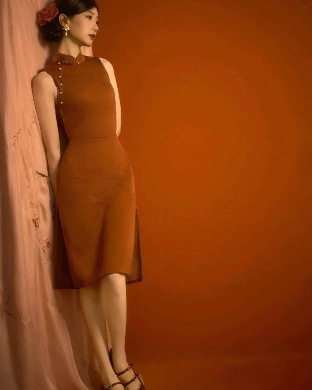 这次旗袍大片里,她把民国风情玩出了新高度——红棕旗袍扫过木窗的瞬间像火焰掠过古墙,珍珠盘扣折射出柔和光泽;最绝的是她抬手轻抚玉簪的瞬间——指尖划过玉石的弧度与旗袍开衩呼应,眼神却带着三分疏离七分妩媚。网友笑称:“毛晓彤的美,是带着檀香味的旧书卷。”她却歪头一笑说:“复古和风情,本来就可以一起跳舞呀。”