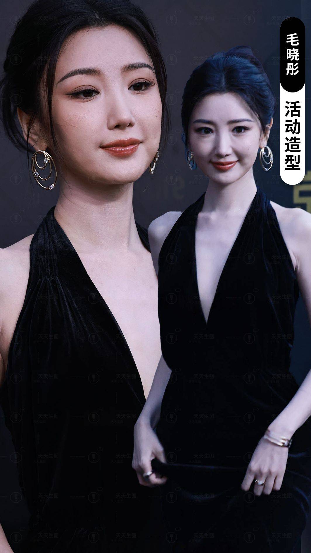 家人们,我最近又被毛晓彤狠狠美到了!就她穿那身黑色深V礼服长裙出席活动的造型,直接在我心里封神,美得我眼睛都舍不得从她身上挪开,现在满脑子都是她那惊艳的模样!