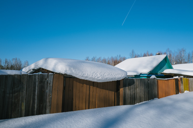 旅程的最终,是一座距离贝 加尔 斯克三十公里左右的小村庄。红阳对这里的描述是,一次偶然的经过,便爱上了这里的沉默。村庄规模很大,积雪深厚,雪面极其纯净,看起来入冬以后便鲜有人至。 周围如意料般的寂静无声,一条窄窄的路通向村庄深处。有条黄狗远远地望着我们,一动不动,安安静静,只有当我们快接近它时,才起身向更远处跑去。像是在告诉我们,小路的尽头还远远未到。