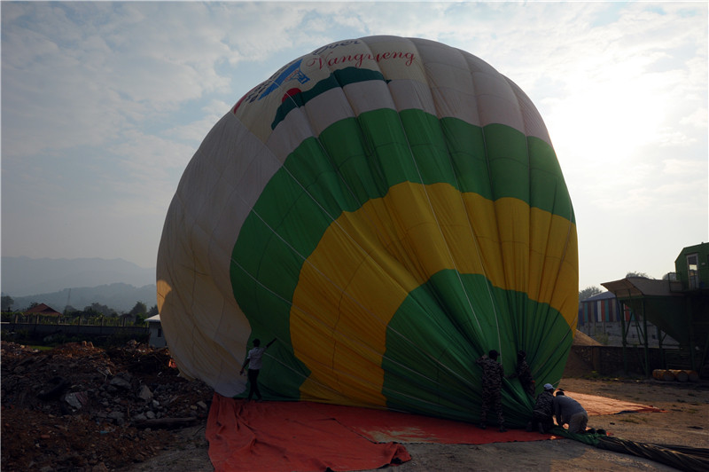 本来以为坐热气球升上去难,下来容易。等坐了才知道,原来在万荣,降热气球更难,我们差点挂到电线,进入牧场,而且热气球收的时候还被刮破了。