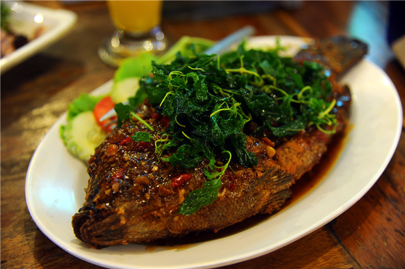 万荣没有琅勃拉邦那样法资情调那么浓郁,我们在路口找到了一家当地菜餐厅,有个会说简单中文的大叔给我们推荐了些特色菜,有老式的冬荫功汤,炒饭,烤鱼等。感觉比法式西餐给人印象深刻,价格也便宜。吃饱吃好,继续抓紧享受当地的按摩服务,毕竟赶了一天的路。