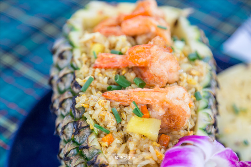 菠萝海鲜炒饭 150泰铢 中国胃嘛,不吃米饭都觉得缺少了点什么,所以在甲米几乎每天都吃过菠萝海鲜炒饭。 每一家餐厅的菠萝海鲜炒饭都是真材实料,用整只菠萝盛放着气诱人的海鲜炒饭。 KoDam家的炒饭超好吃,些许的辛辣香味让人食欲大增,油炸香脆大虾爽口弹牙,荣获挑食的女汉纸大拇指认证!