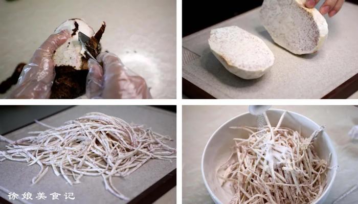 准备香芋:将香芋去皮后切成小块,用清水稍微冲洗表面的淀粉,以防止氧化变色。
