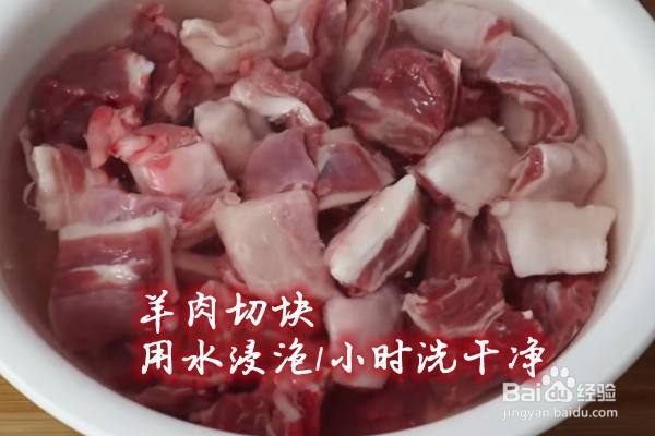 羊肉切块,用冷水浸泡去除血水,换几次水直至水清澈。