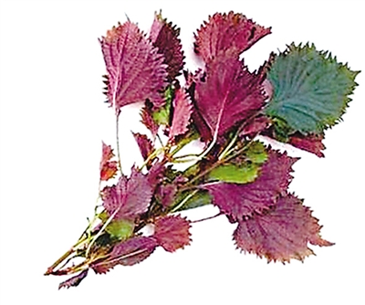 加入小米椒、姜、蒜碎,爆出香味后,放入紫苏叶快速翻炒几下。