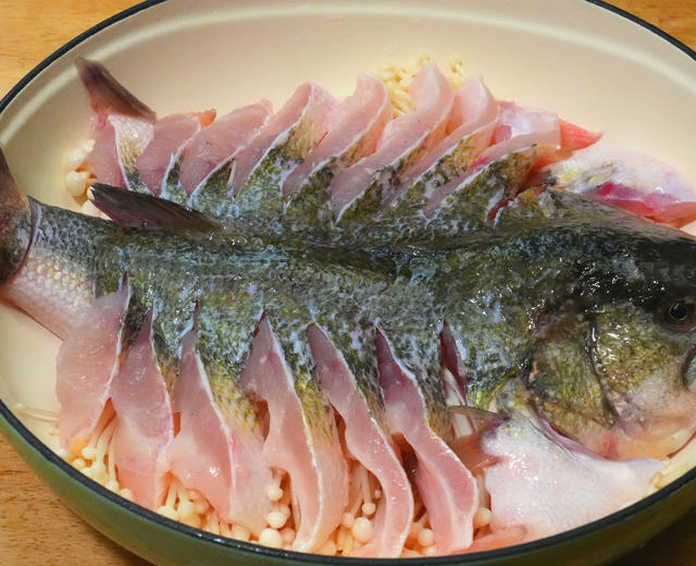 处理鲈鱼:将鲈鱼洗净,去鳞、去内脏,然后在鱼身上划几刀,以便更好地入味。