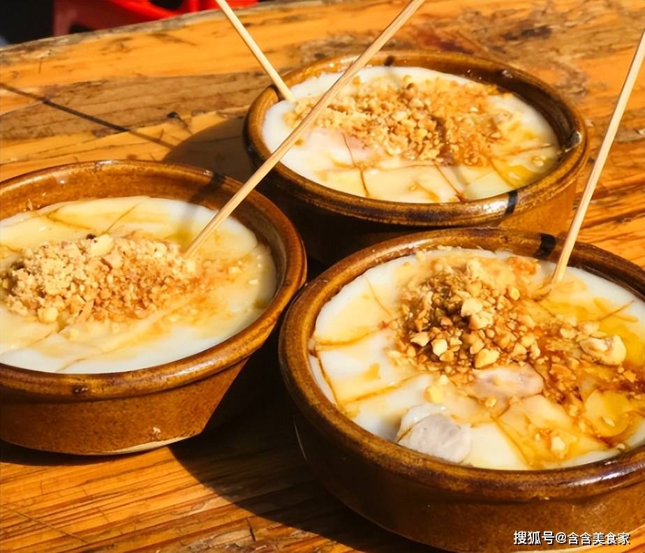 阳江钵仔玛(又称钵仔糕)是当地特色传统小吃,口感顺滑Q弹、米香浓郁,有原味、芋头、红糖等经典口味。咸口的白玛和芋头玛在蒸制后会淋上咸鲜酱油并撒上焙香花生粉,咸甜交织,风味独特;甜口的红糖玛则软糯清甜,爽口不腻。多数食客认为其味道地道、富有乡土情怀,尤其以传统米浆制作、现蒸现卖的老式做法最受欢迎。价格亲民,约1.5元一碗,逢年过节销量惊人,是阳春人记忆中的“童年味道。总体而言,广受好评,值得一试。 3.狗利仔(豆糠糍)