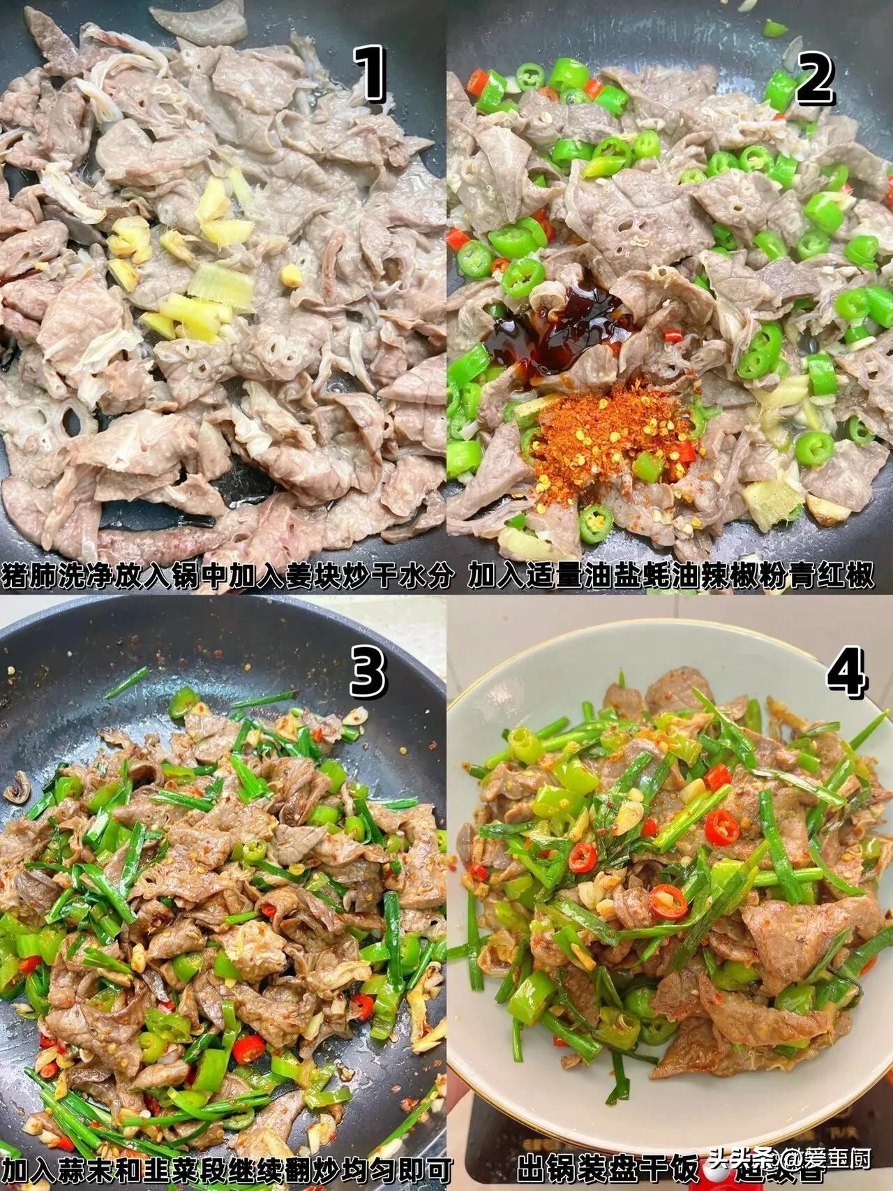 1、韭菜炒猪肺 猪肺是一种常见的食材,营养丰富,口感鲜美。韭菜则是另一种常见的蔬菜,味道香辣,能够增加菜肴的风味。将这两种食材搭配在一起,炒制成一道美味的佳肴,既能够满足口感,又能够提供营养。首先将猪肺清洗干净,切成适当的大小,然后在热锅中加油煸炒猪肺,再加入韭菜继续翻炒,最后加入适量的盐和调料,一道美味的韭菜炒猪肺就完成了。