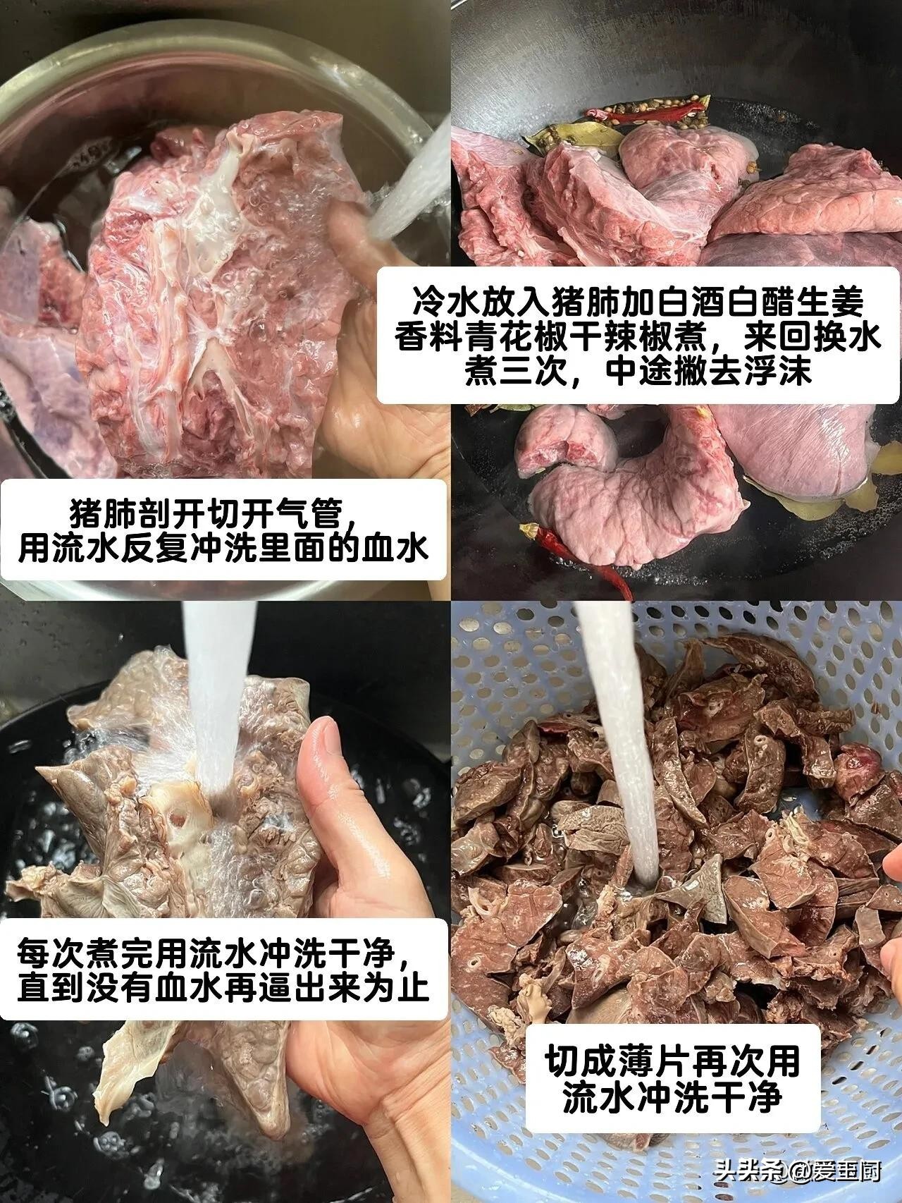 3、香辣猪肺 除了上述两种做法之外,猪肺还可以制成香辣的菜品。首先将猪肺清洗干净,切成适当的大小,然后在热锅中加油煸炒猪肺,再加入辣椒、蒜、姜等调料继续翻炒,最后加入适量的盐和酱油等调料,一道香辣的猪肺就完成了。这种做法不仅能够满足口感,还能够提供辣味和营养。无论是下饭还是当零食吃都非常好。