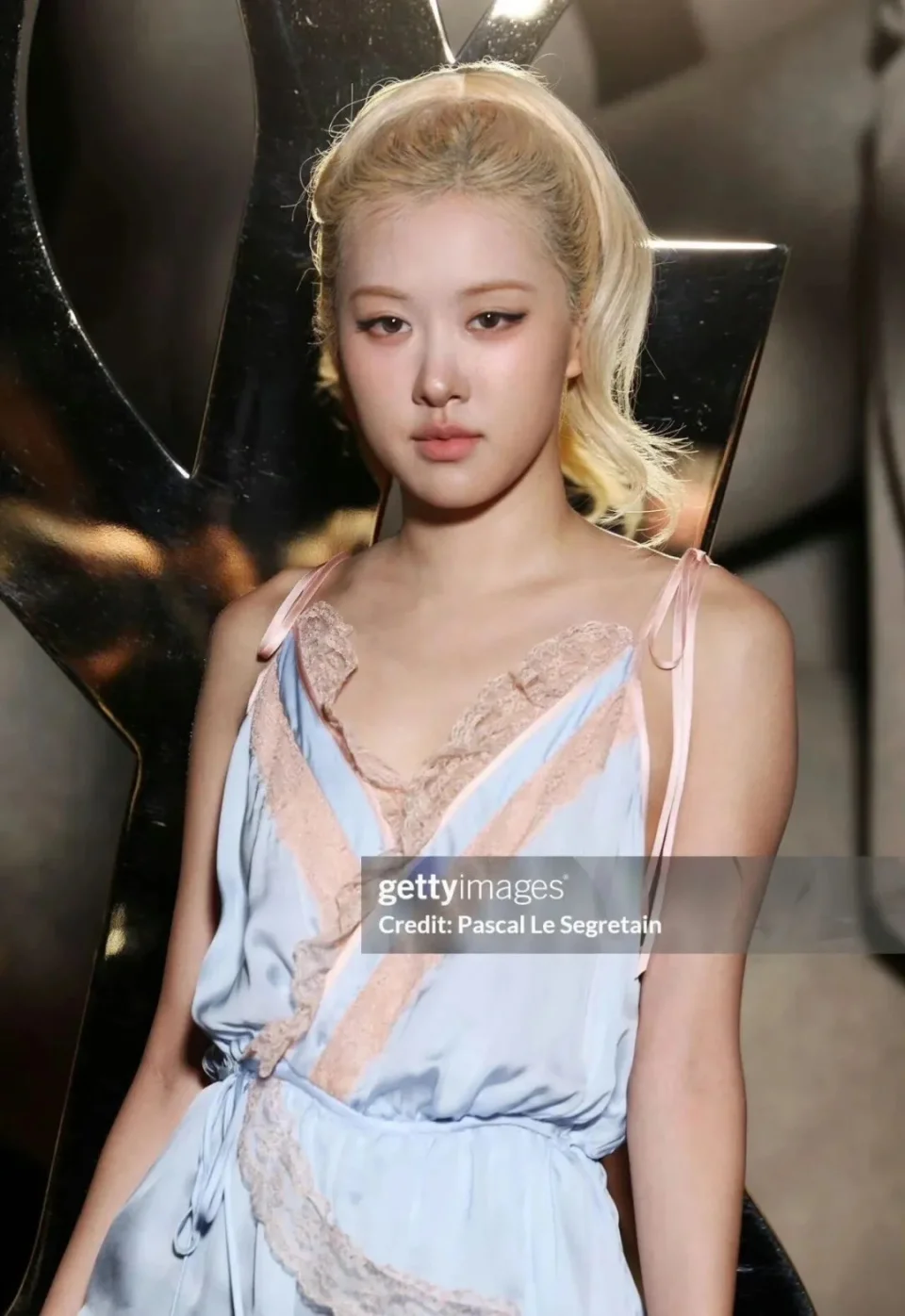 朴彩英这一套也是有点睡衣风的感觉,根本不像是会穿上街的服装,人倒是一直都挺美的,好透亮白皙,很像芭比娃娃。