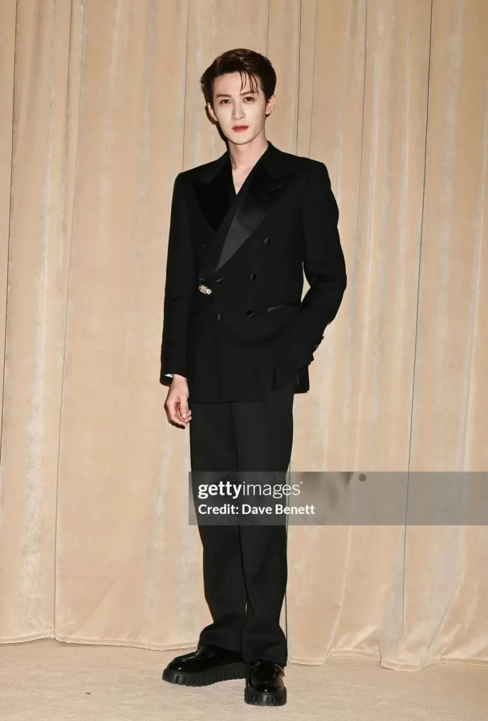 檀健次的状态可以,造型稍显普通,但这个粉底色号有点太白了,感觉整个人造型有点像吸血鬼,稍微有点奇怪了,怪怪的还有他的厚底鞋……