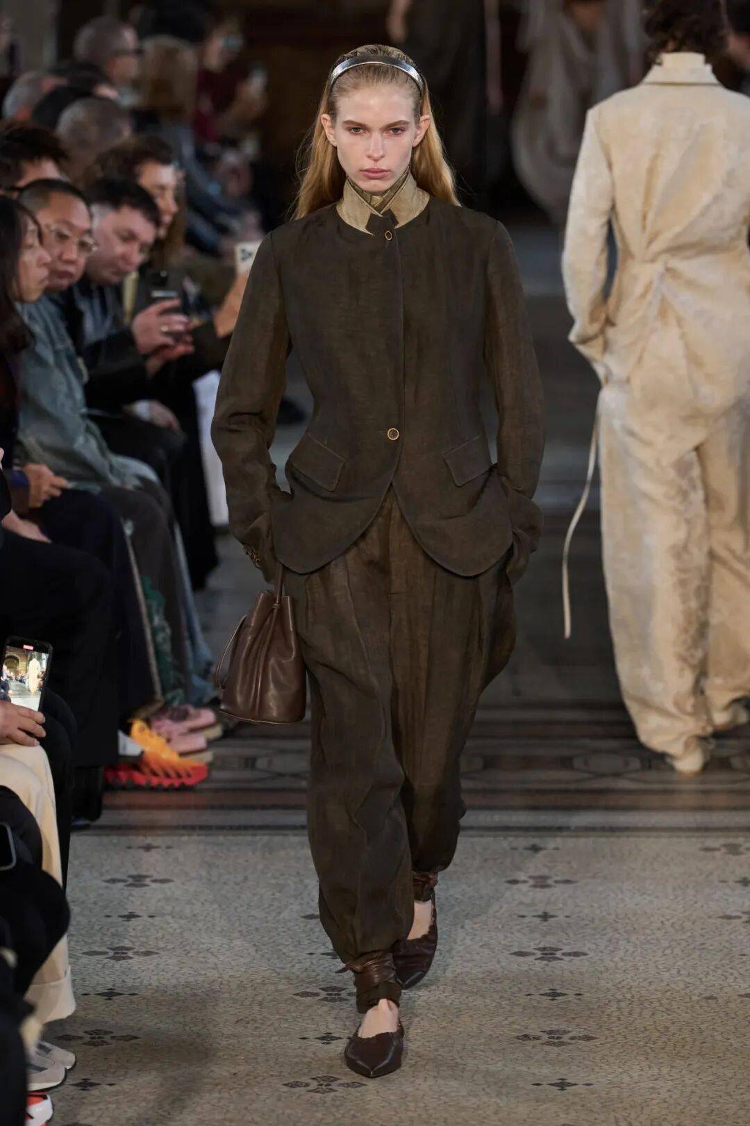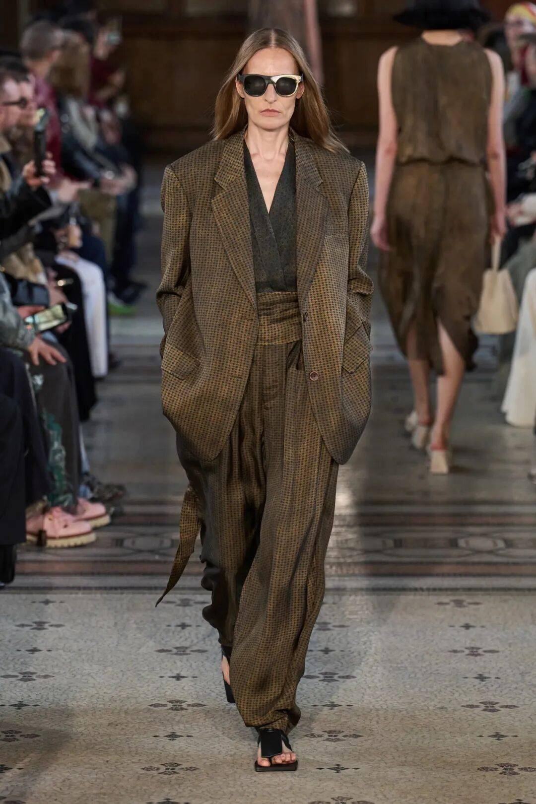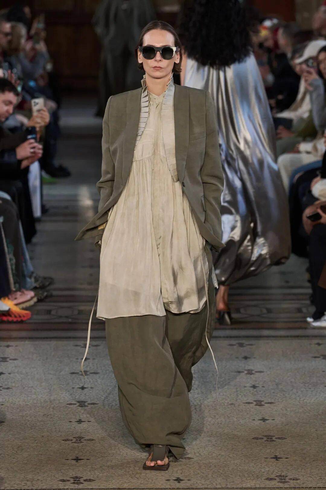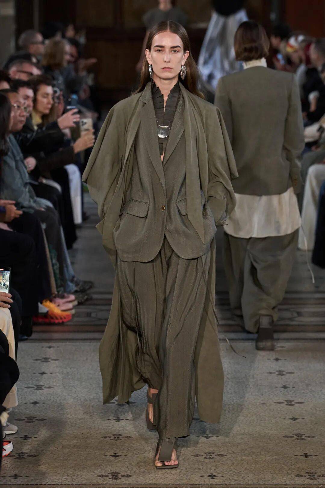延续了品牌一贯的东方禅意设计风格,垂感的面料增添了服装的实穿性,大地色系的夹持又凸显了松弛感,为巴黎时装周带来了一次东方美学的“甜蜜暴击”。