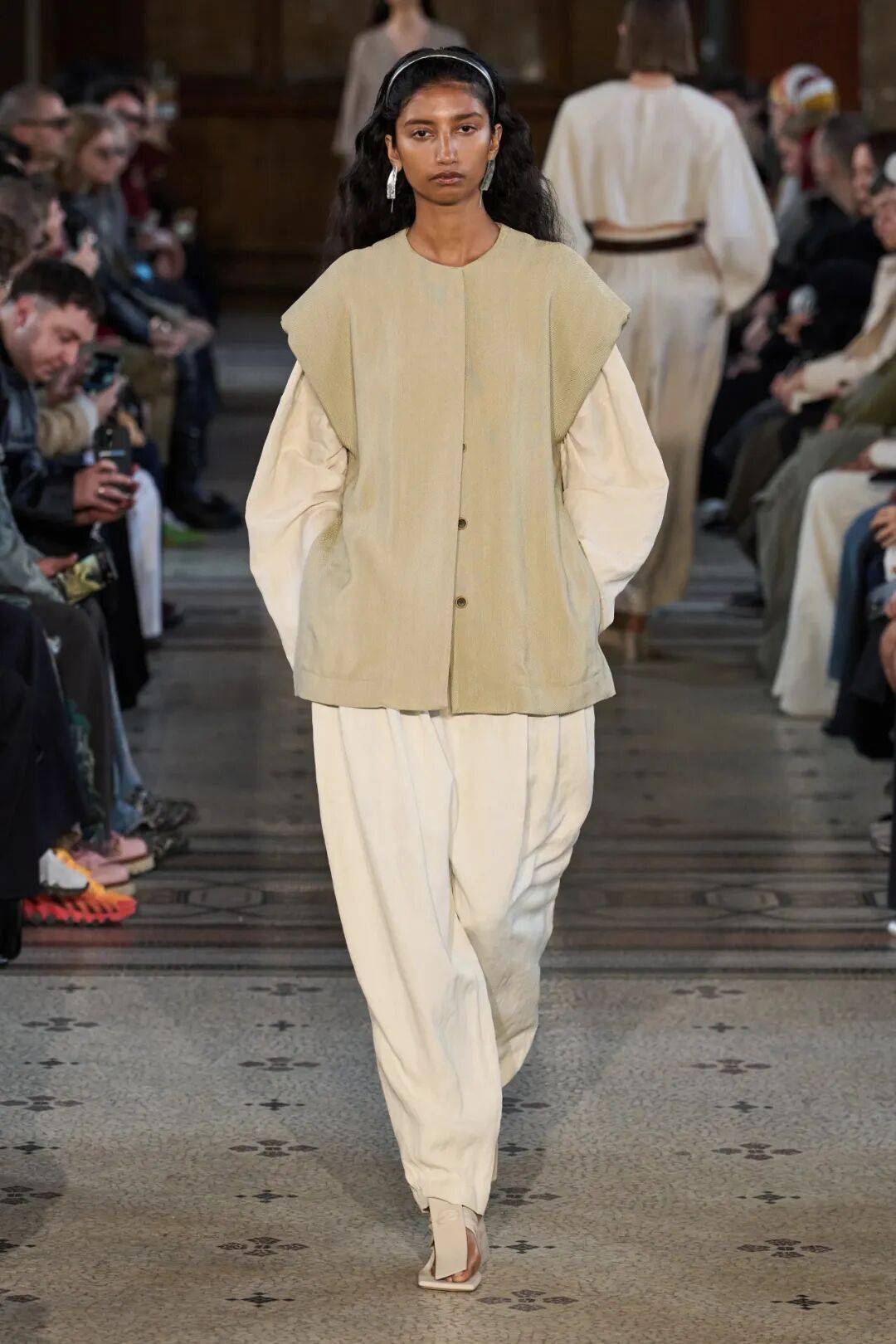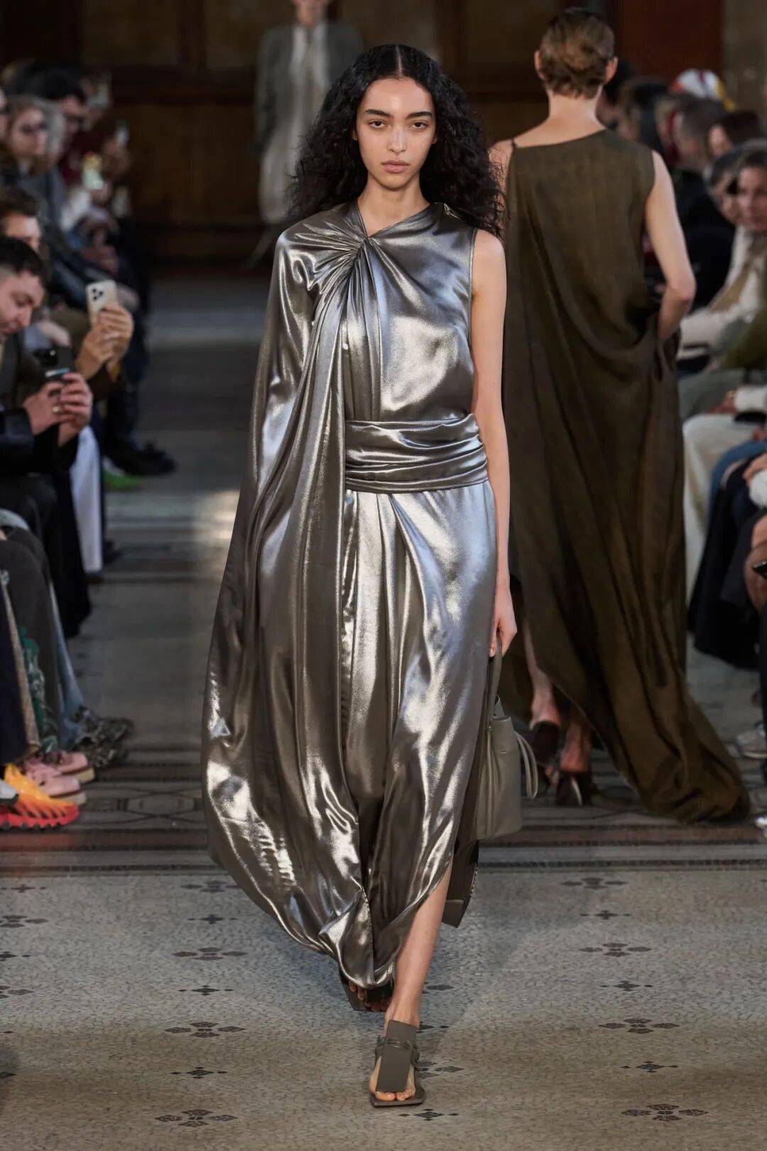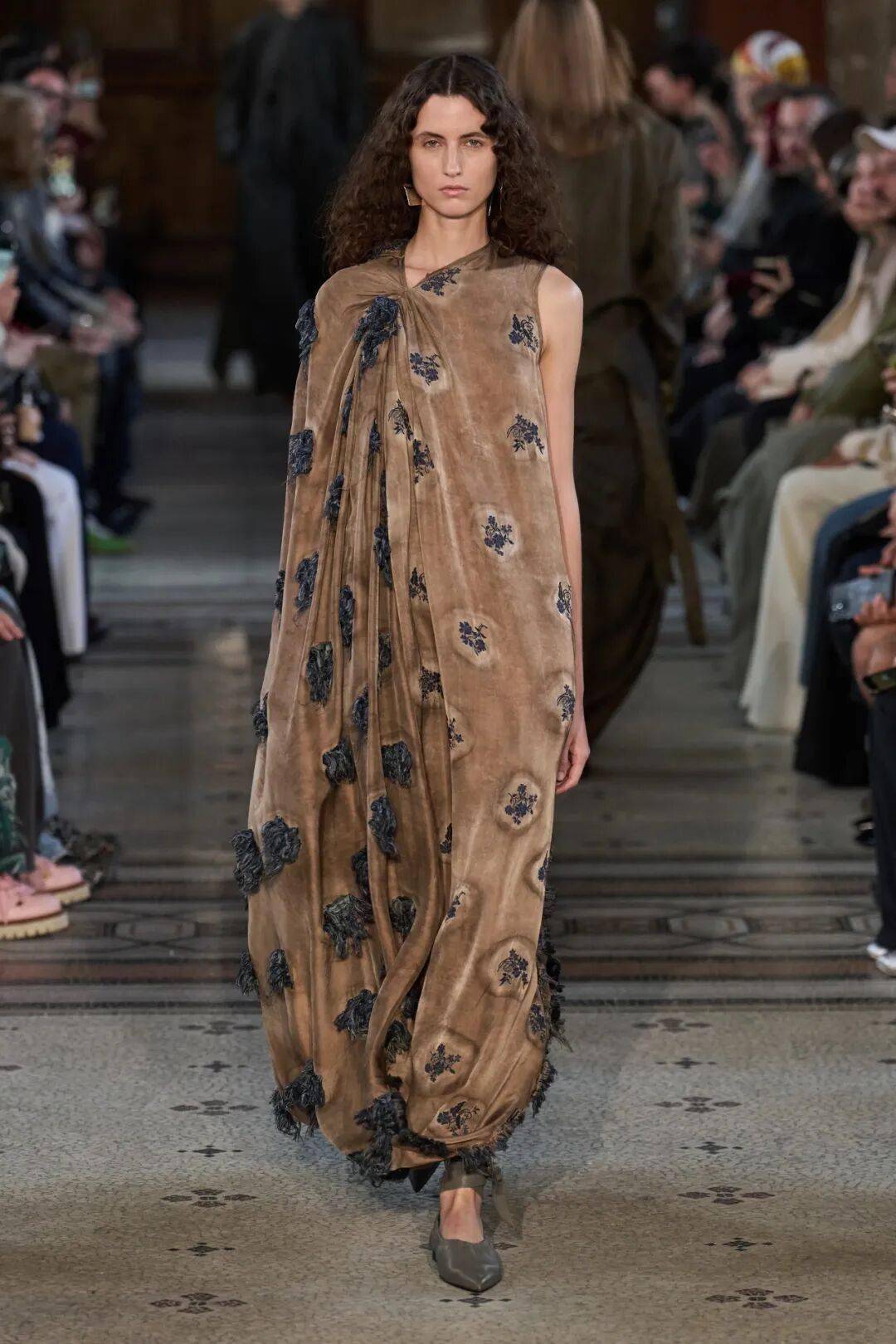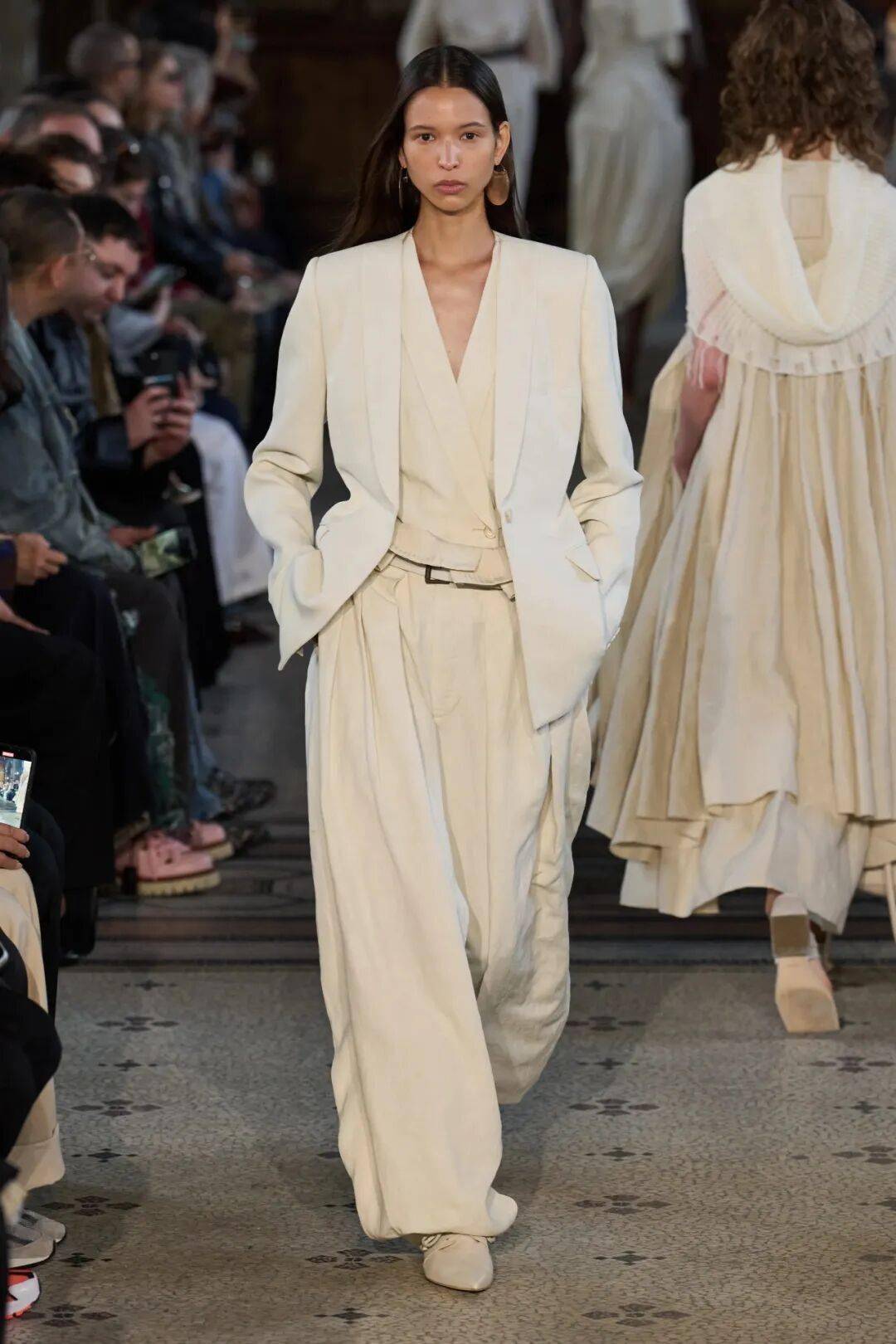 延续了品牌一贯的东方禅意设计风格,垂感的面料增添了服装的实穿性,大地色系的夹持又凸显了松弛感,为巴黎时装周带来了一次东方美学的“甜蜜暴击”。