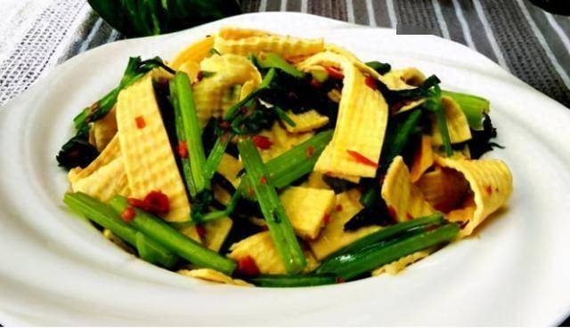 1.西芹洗净,切段。千张冲洗一下,切宽条,用热水焯一下,沥净水份备用