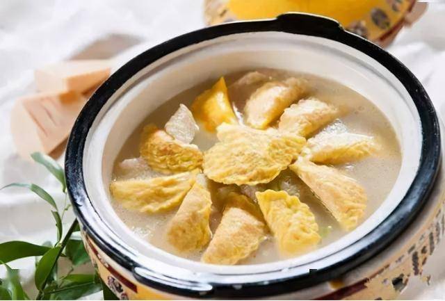 4、鸡汤煮开,放入皮肚、木耳、菜薹、蛋饺,加盐、鸡精、胡椒粉、菜籽油调味,装盘即可。