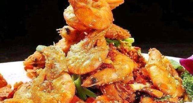 2、锅放油,小火烧开,虾沾满干淀粉后放入锅中,炸熟炸酥,捞出沥油。