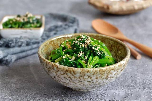 材 料:菠菜1把,生抽1小勺,香醋1勺,盐1茶匙,香油1茶匙,蔬果粉1茶匙,白芝麻1小勺,姜末适量