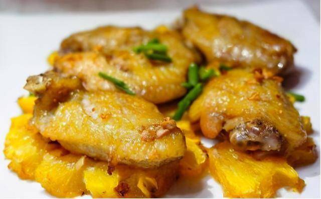 2、放入鸡翅,转中小火煸,当鸡翅煸到稍微金黄时,加入料酒和酱油翻炒;