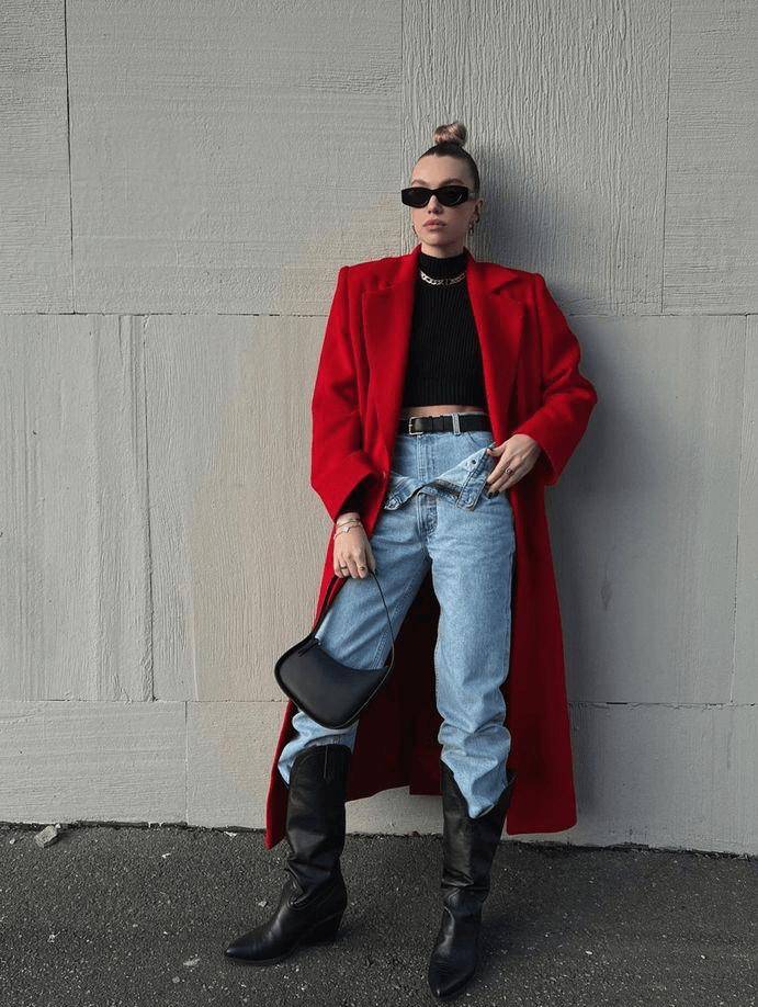 彩色大衣能让你的冬季造型不再寡淡,更加养眼有活力。而搭配牛仔裤+短靴,则是彩色大衣正确时髦的打开方式,气质时髦两不误。