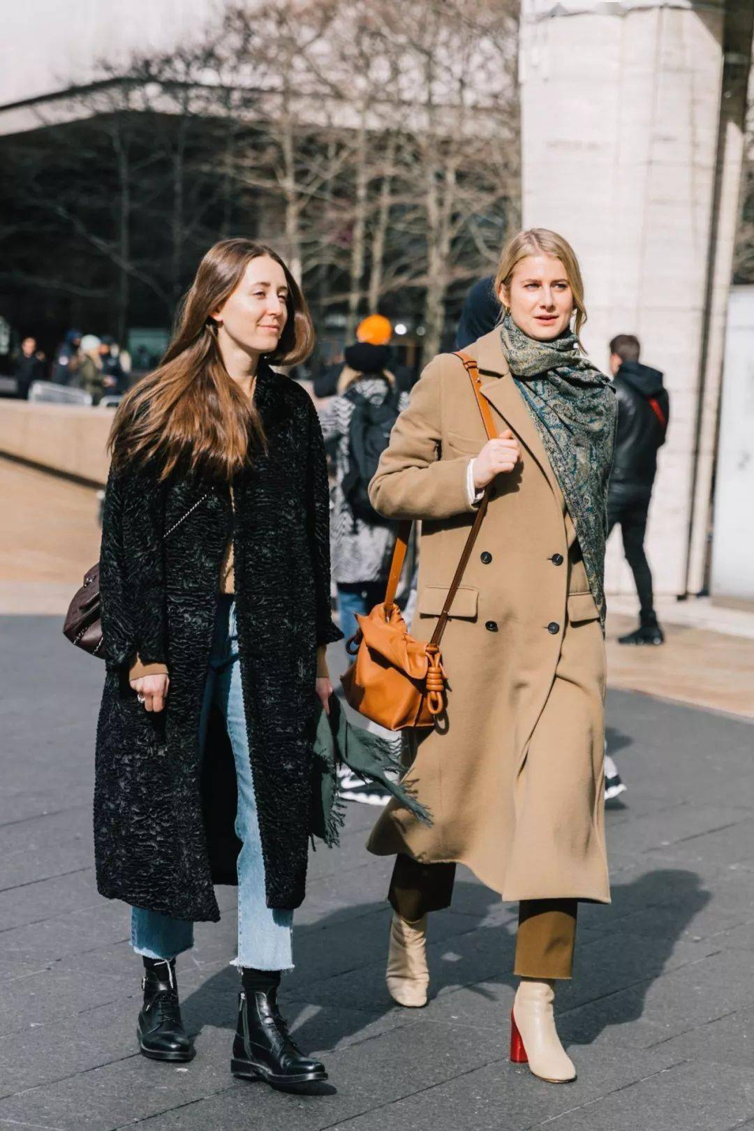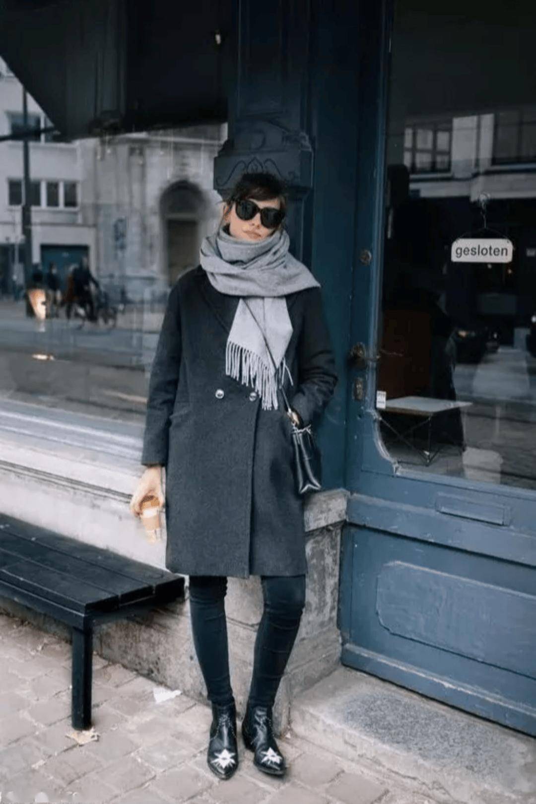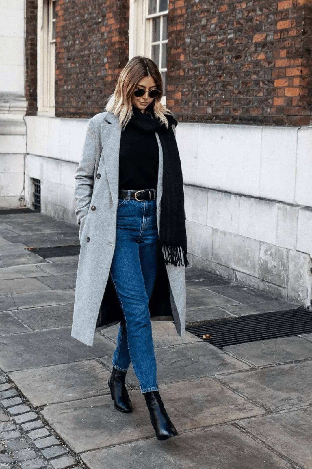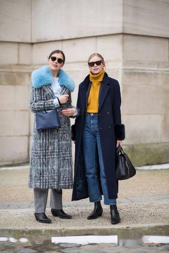 灰色大衣气质简约不挑人,而灰色大衣+牛仔裤+踝靴的组合可以说是冬季标配,在潮人街拍中素来有着很高的出镜率。当你不知道穿什么时候的,选择这组黄金搭配准没错。