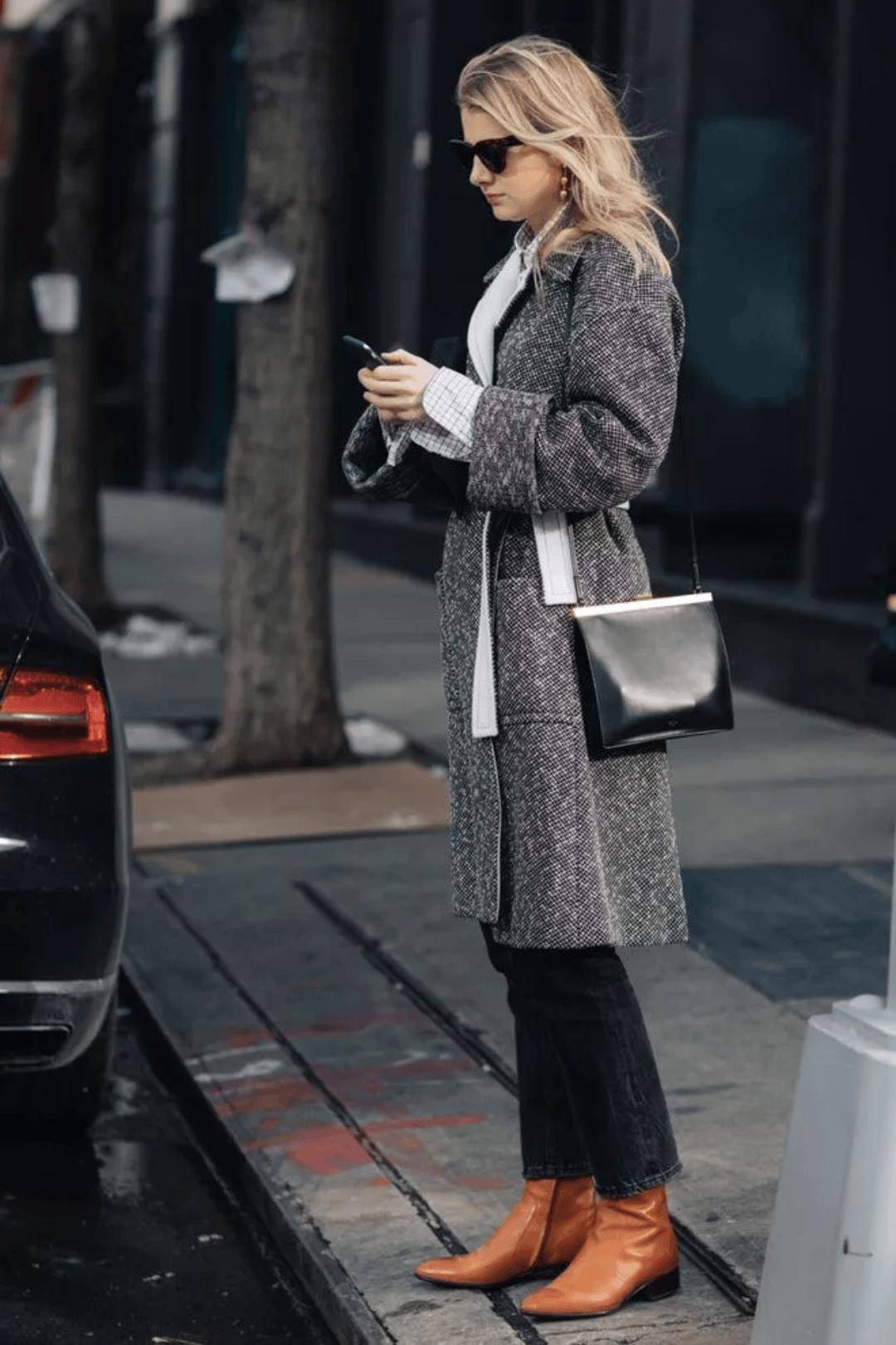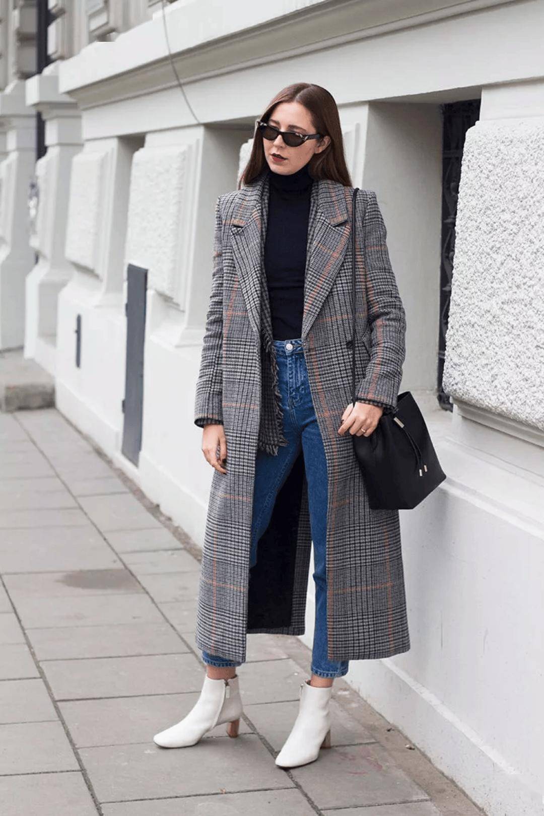 短靴的颜色也可以与大衣中的格纹元素相呼应,让你的搭配更具整体感。