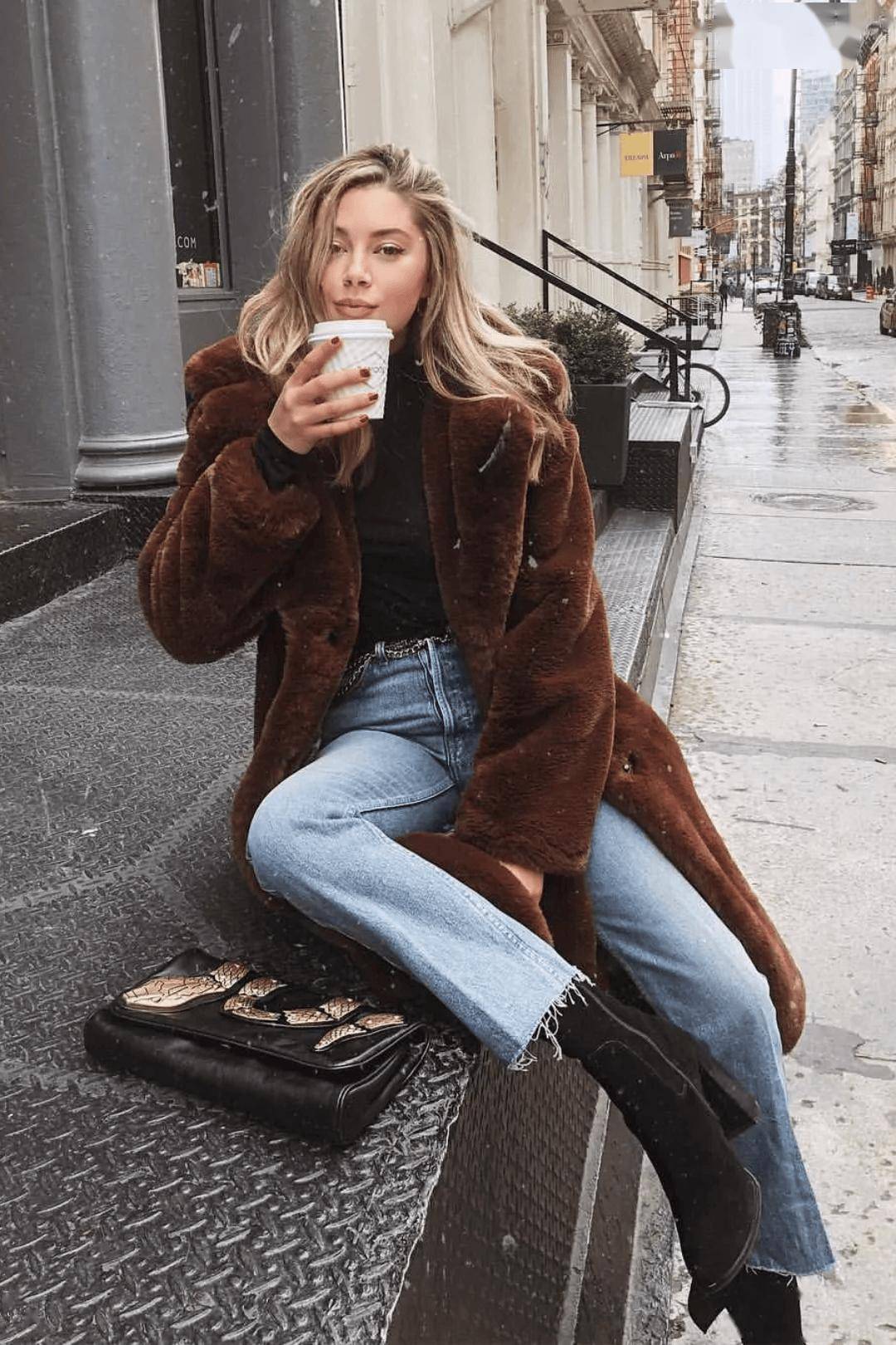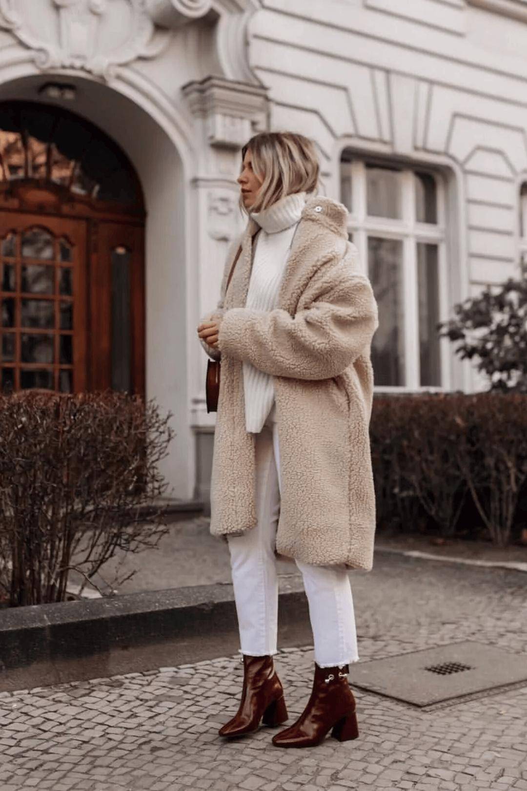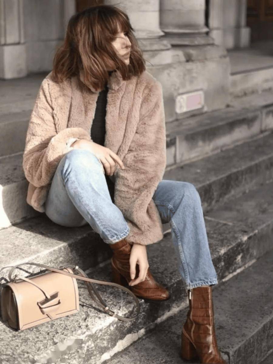 泰迪熊大衣+牛仔裤+短靴