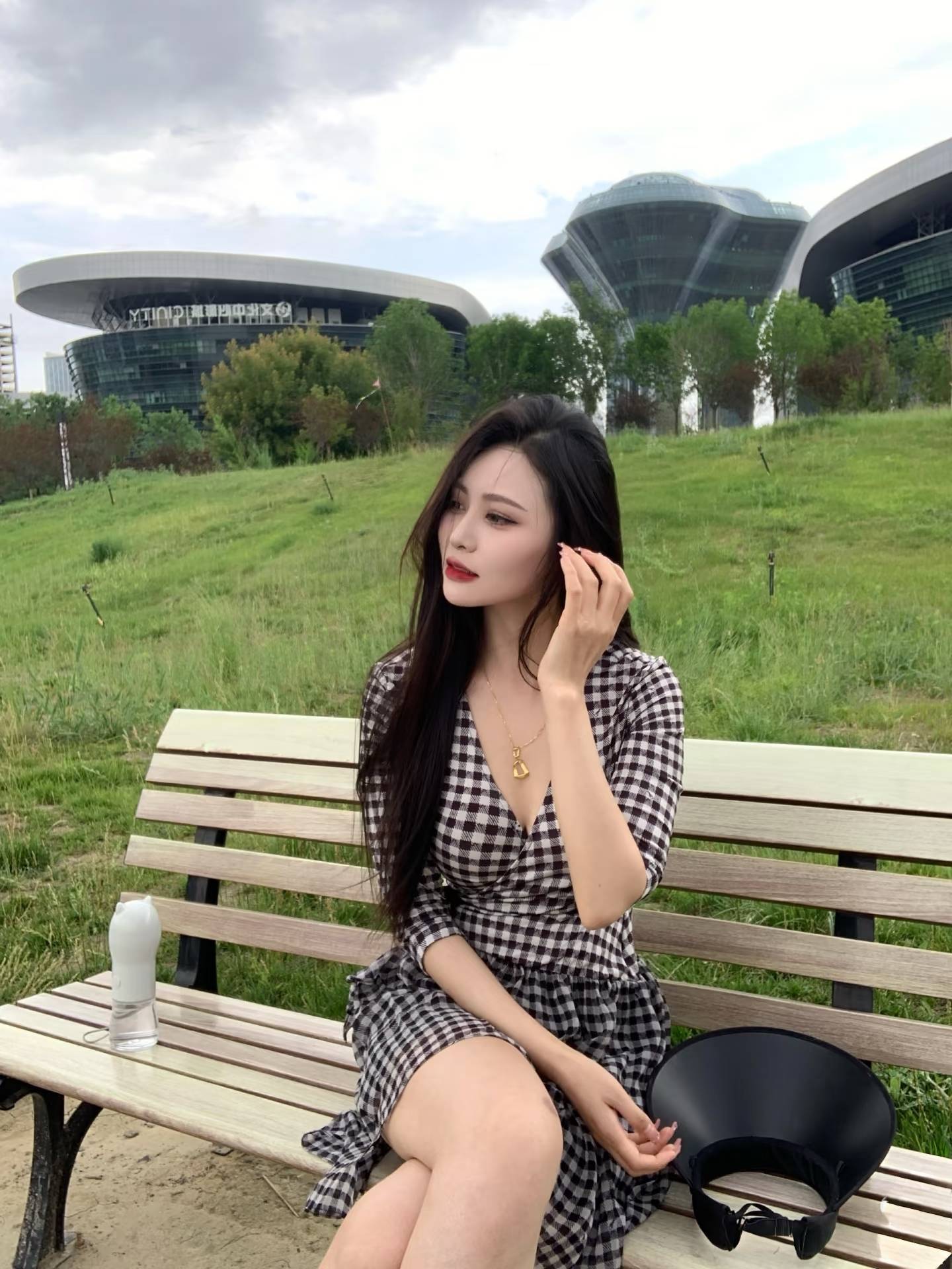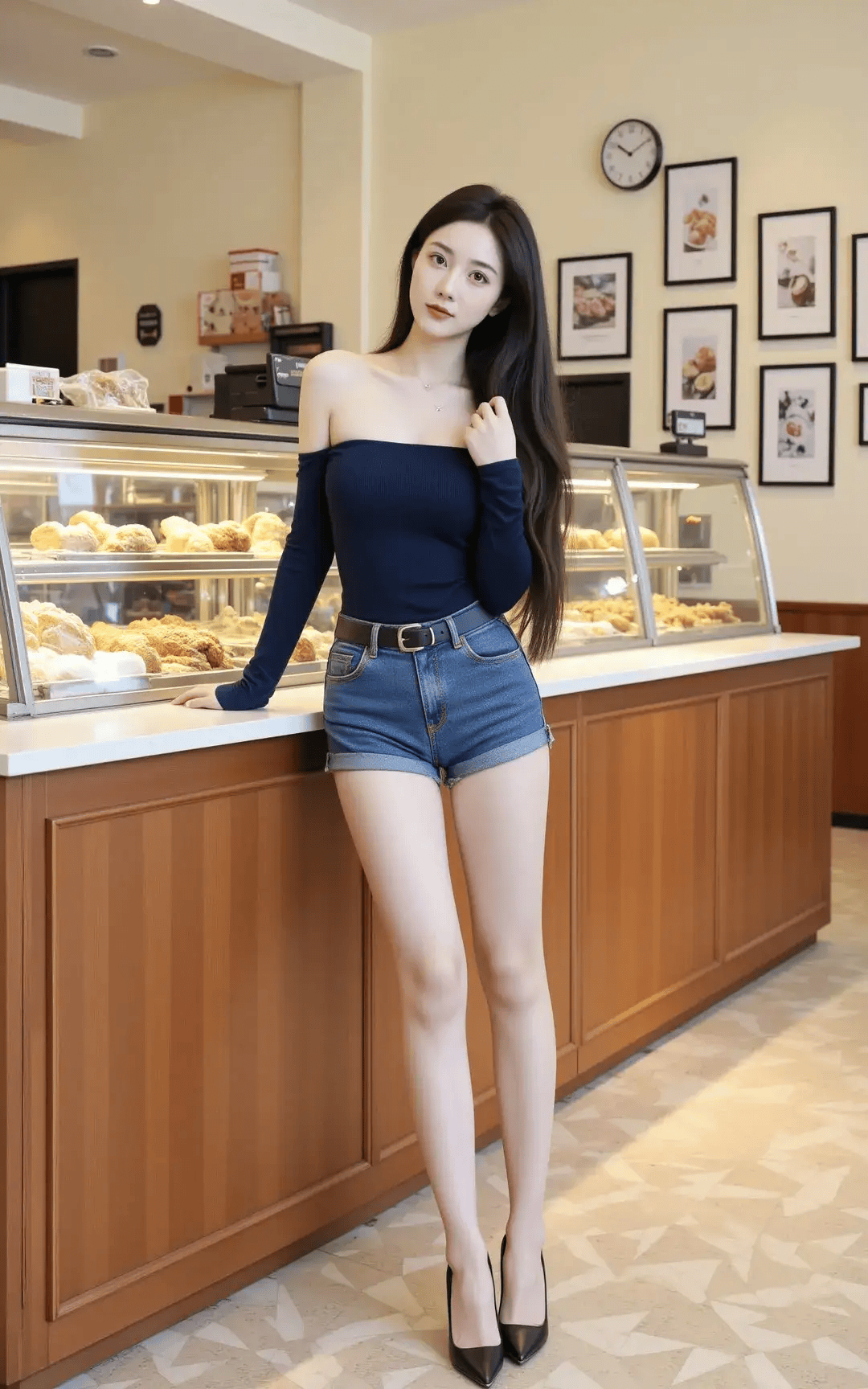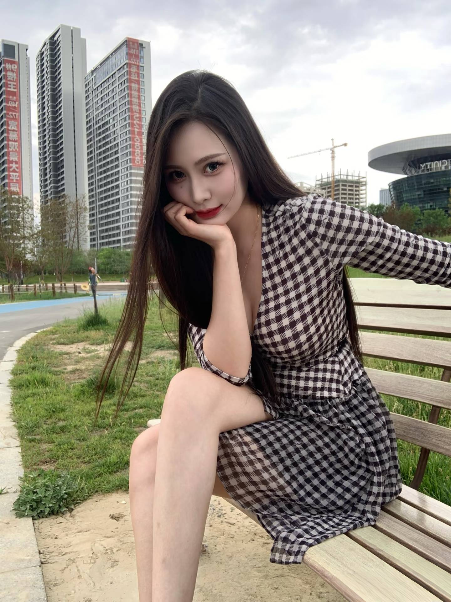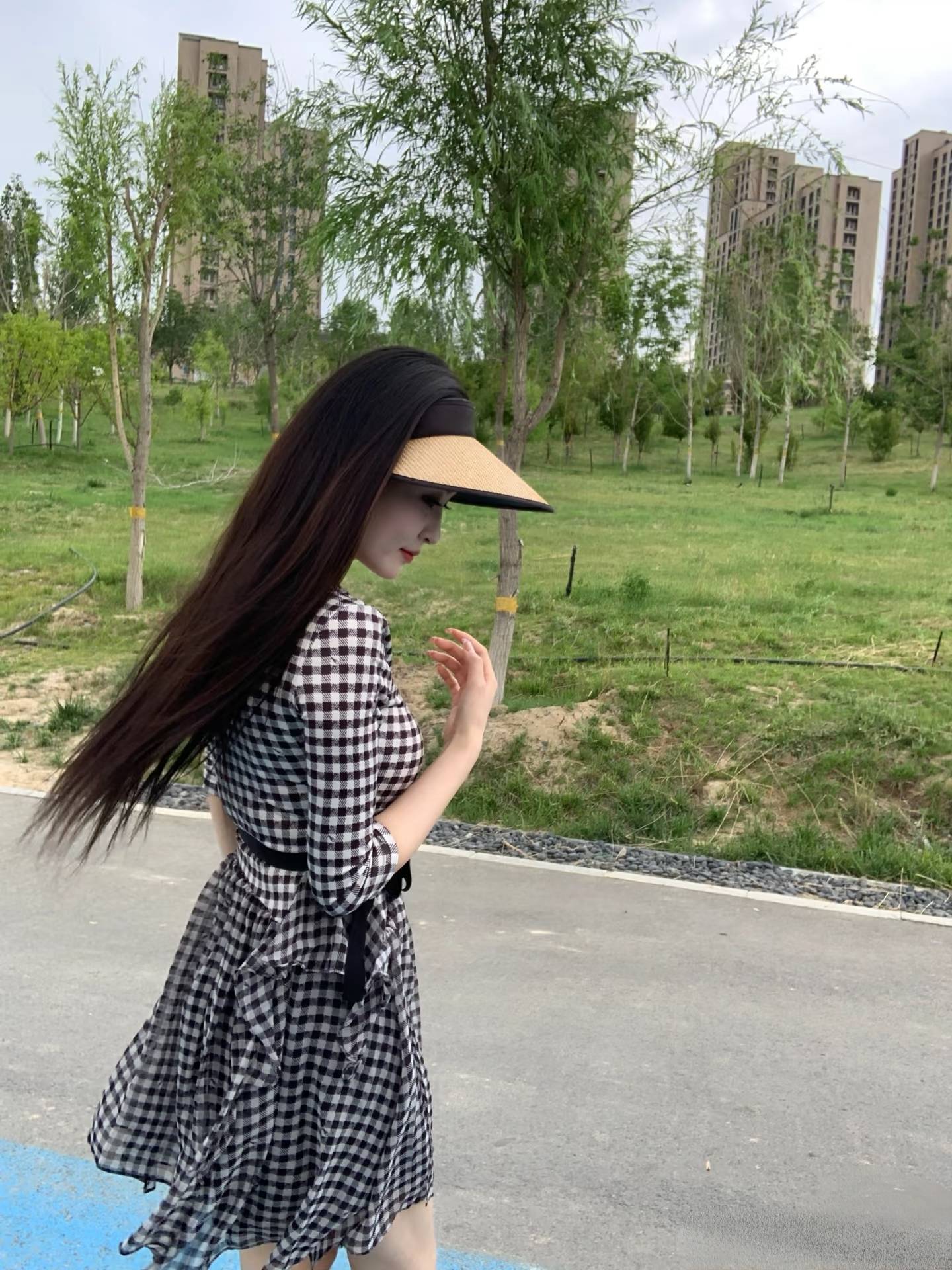 长发如瀑,轻轻垂落,映衬着她的面庞,