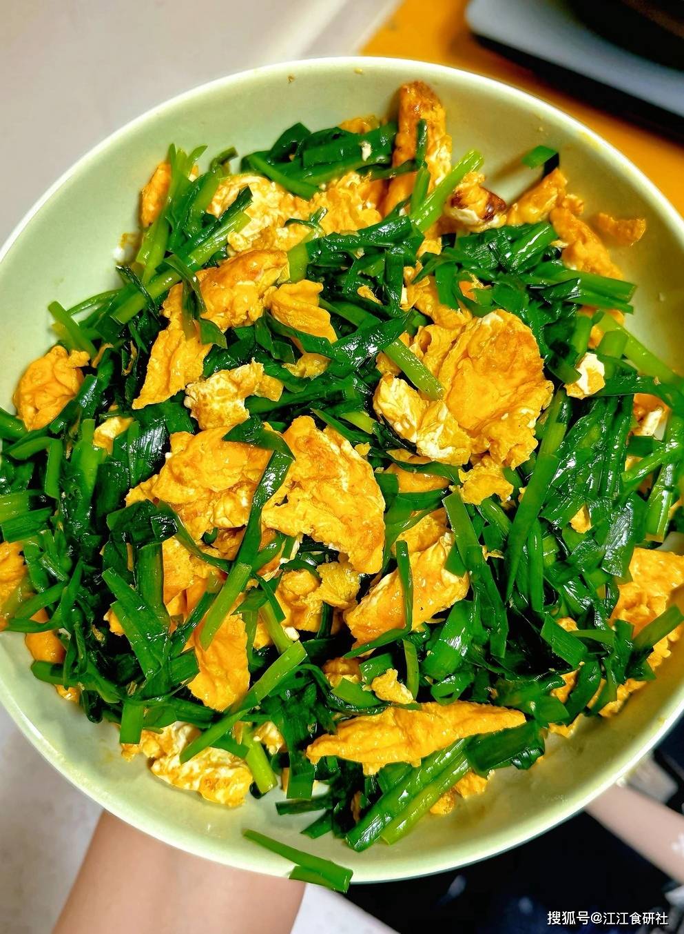 这样炒出来的韭菜,绿得发亮,脆嫩不出水。鸡蛋蓬松,裹着韭菜的香气。