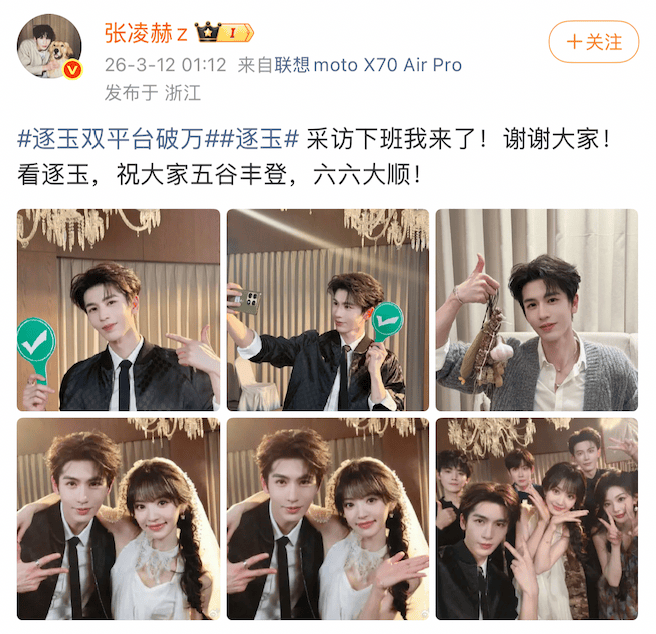 在《逐玉》的剧宣活动中,张凌赫和小田的互动简直甜度超标,让众多粉丝和网友直呼“嗑到了”。从肢体接触时的反应来看,小田贴心拿下张凌赫头上的东西,张凌赫瞬间娇羞,耸肩、低头、咧嘴,摸耳朵时更是瞬间红温,眼神都变得迷离。肢体接触仿佛成了张凌赫的心动开关,小田碰到他,他就颧骨升天,嘴角全程上扬,身体却有些僵硬,这紧张的表现无疑是在乎的信号。