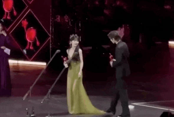 同年年底,两人有了第一张合照,但当时不敢太亲密,一起上台时,不敢越过安全距离,领奖时也充满礼貌和克制。座位被安排在一起却没有太多交流,一句回头交谈,诞生了“我的经纪人不让我和你说话”“我也是”的世界名画。后来被安排一起走红毯、参加活动出场时,两人之间的距离更是离谱,被嘲“离婚感”重。
